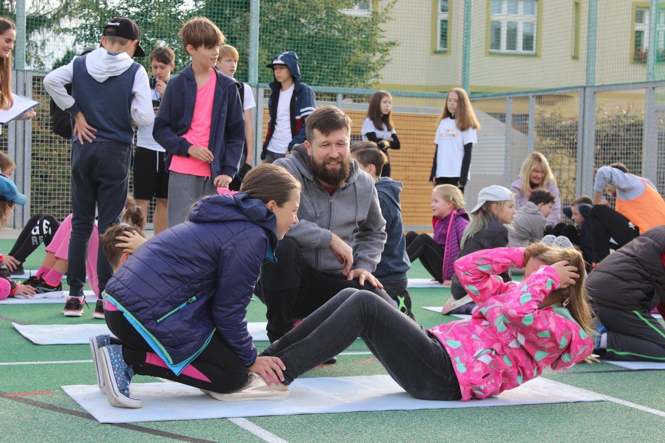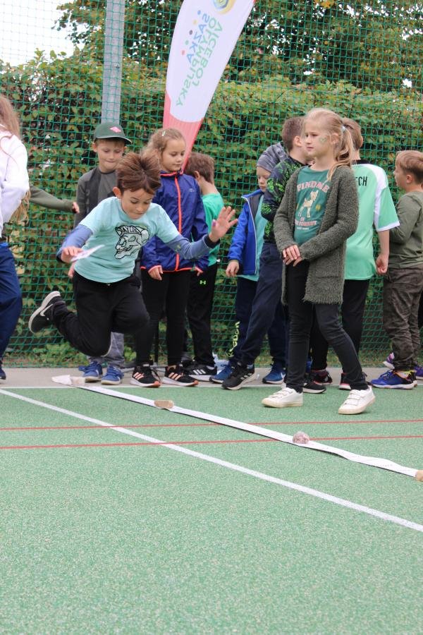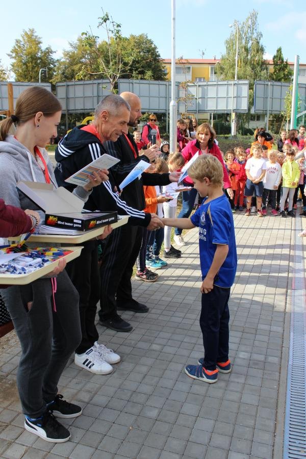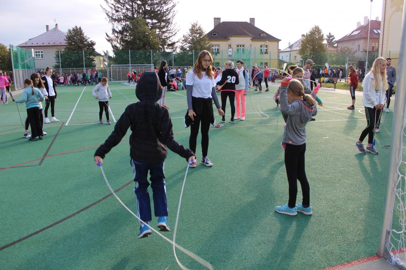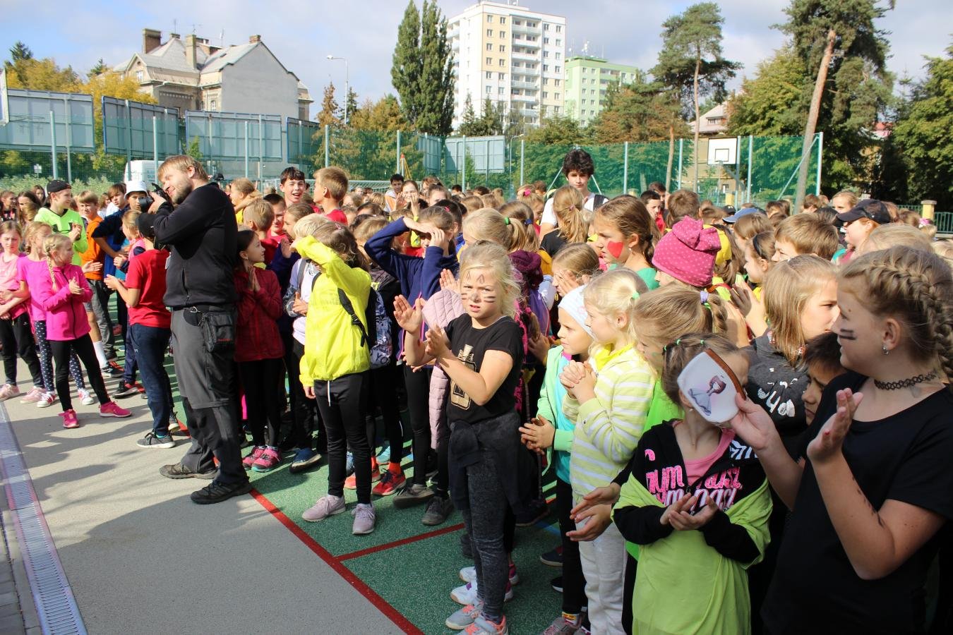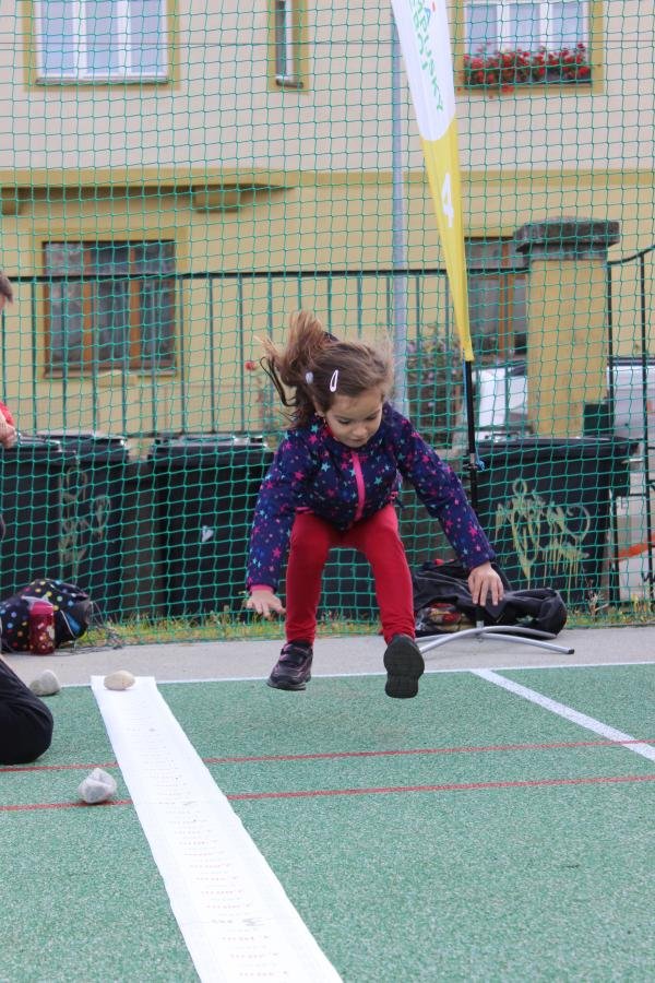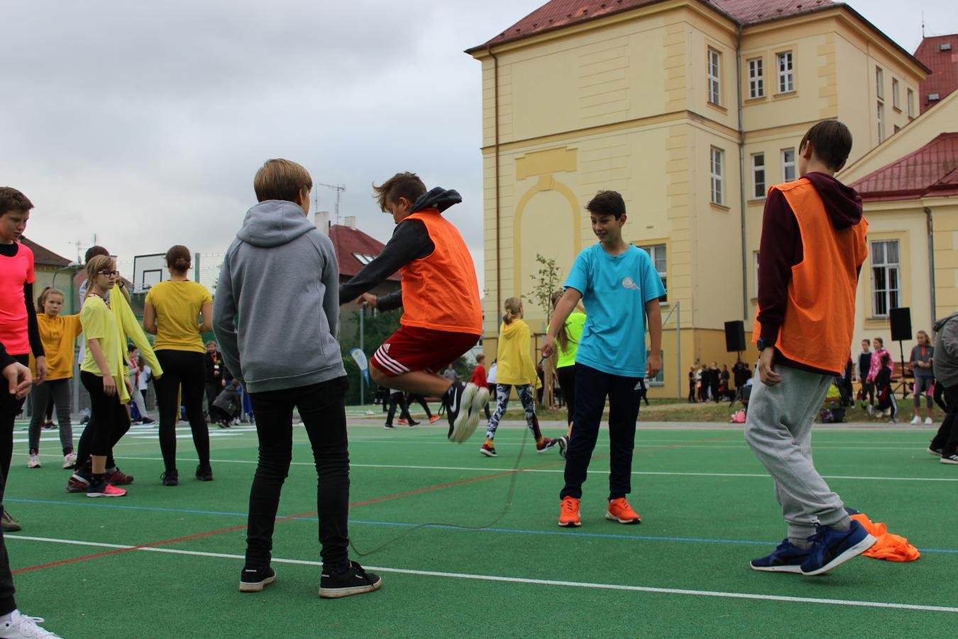 Dne 26. 9. 2019 se na naší škole konal již dlouho slibovaný a připravovaný Sportovní den. Děti si vyzkoušely tři disciplíny z Odznaku všestrannosti olympijských vítězů (OVOV): Skok/ trojskok z místa, přeskok přes švihadlo a sed-lehy. Po absolvování víceboje si děti vyzkoušely: lukostřelbu, petanque, kuličky, střelbu na florbalovou branku a zahrály si vybíjenou. Zároveň probíhal závod vítězů jednotlivých tříd v běhu na 50 metrů a skoku dalekém. Finále Sportovního dne vyvrcholilo exhibičním utkáním v kopané, kdy naši žáci posíleni Martinem Hálou z SK Sigma Olomouc hráli proti učitelům, kterým pomáhali florbalistky Vlaďka Maděrová, Lucie Suchánková (1. SC Tempish Vítkovice) a Vít Beneš, kapitán SK Sigma Olomouc.