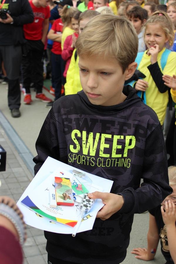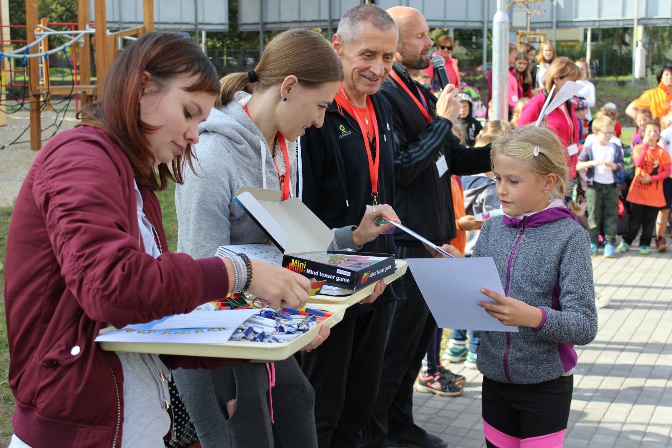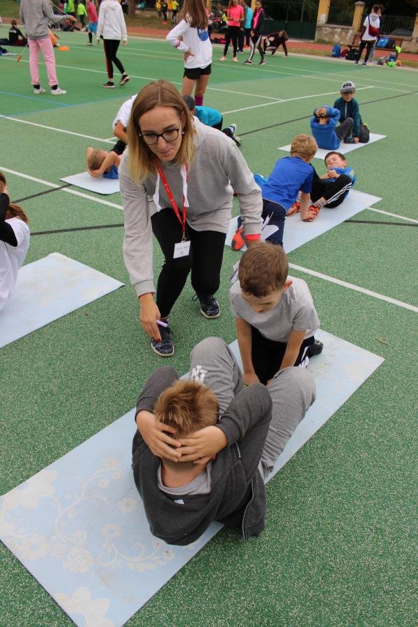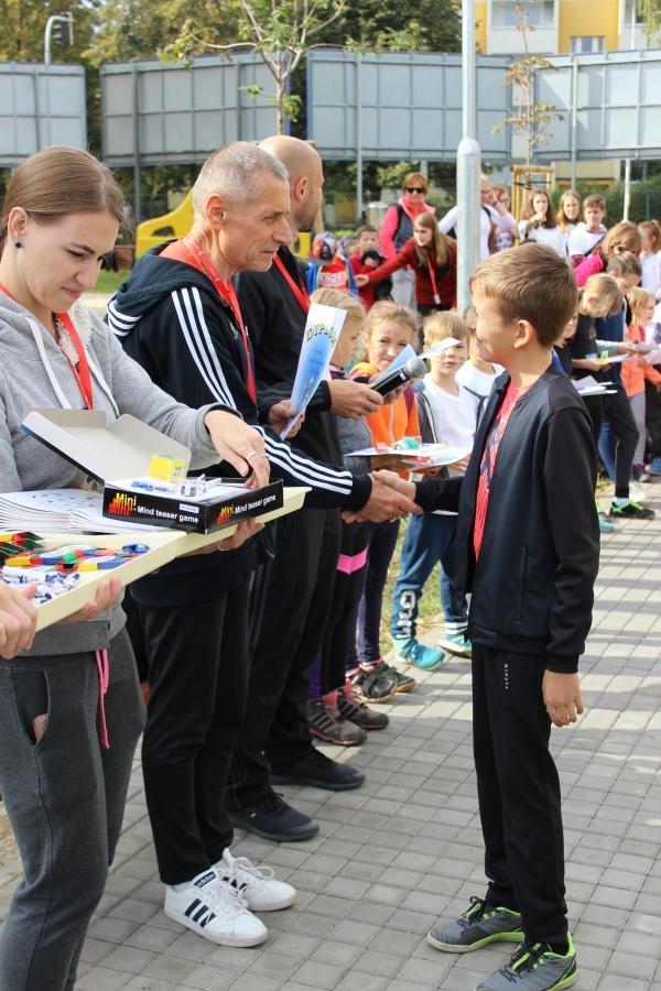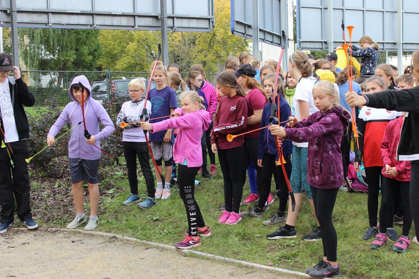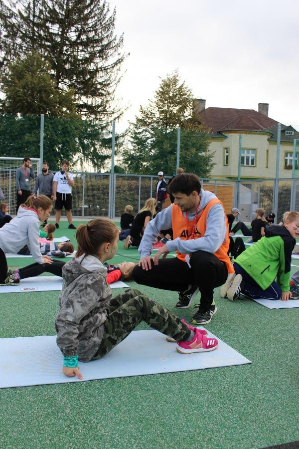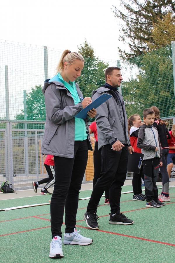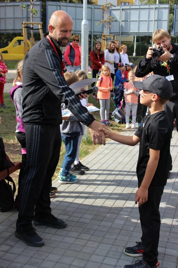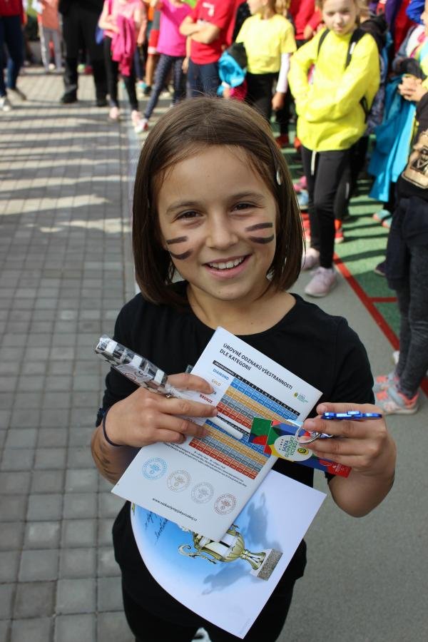 Dne 26. 9. 2019 se na naší škole konal již dlouho slibovaný a připravovaný Sportovní den. Děti si vyzkoušely tři disciplíny z Odznaku všestrannosti olympijských vítězů (OVOV): Skok/ trojskok z místa, přeskok přes švihadlo a sed-lehy. Po absolvování víceboje si děti vyzkoušely: lukostřelbu, petanque, kuličky, střelbu na florbalovou branku a zahrály si vybíjenou. Zároveň probíhal závod vítězů jednotlivých tříd v běhu na 50 metrů a skoku dalekém. Finále Sportovního dne vyvrcholilo exhibičním utkáním v kopané, kdy naši žáci posíleni Martinem Hálou z SK Sigma Olomouc hráli proti učitelům, kterým pomáhali florbalistky Vlaďka Maděrová, Lucie Suchánková (1. SC Tempish Vítkovice) a Vít Beneš, kapitán SK Sigma Olomouc.