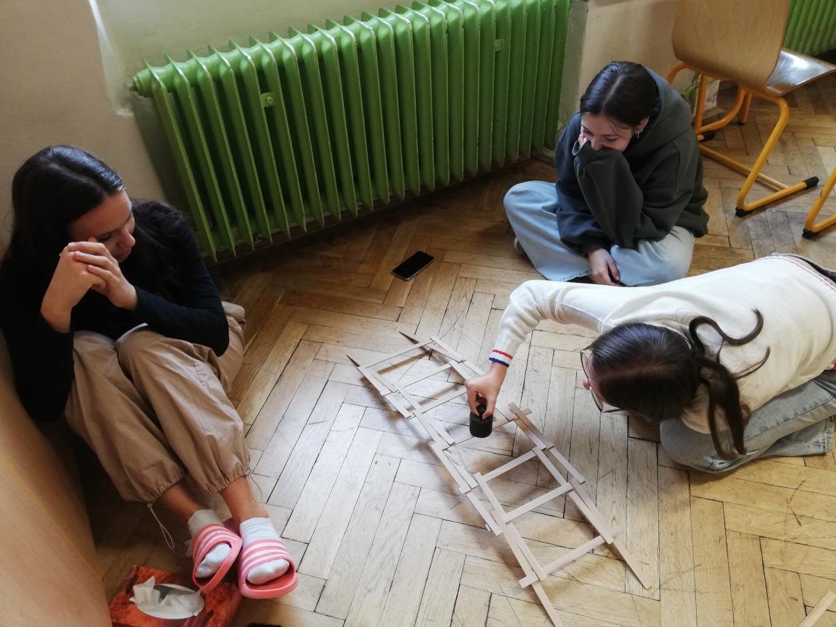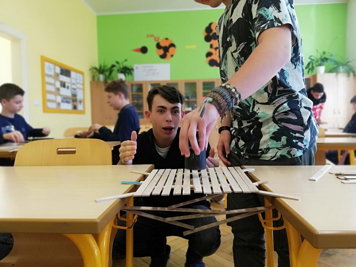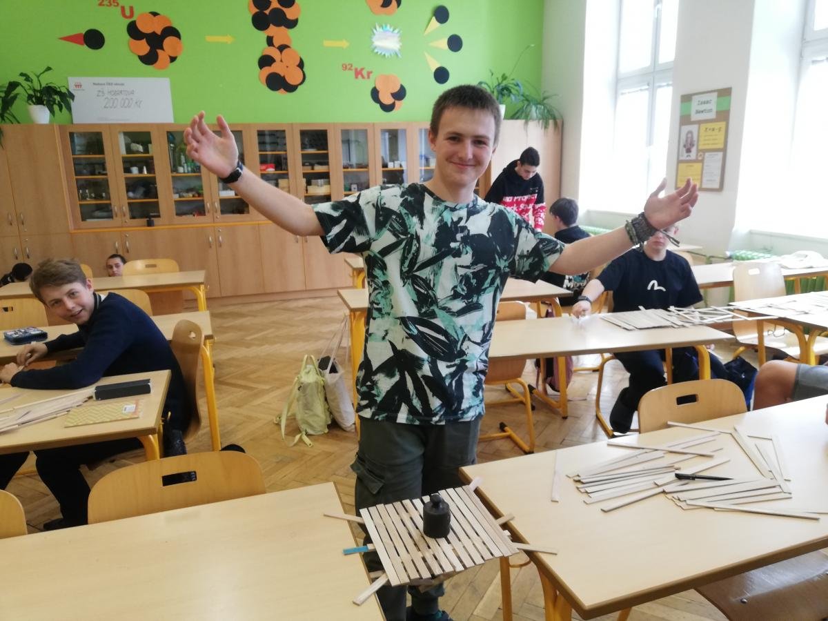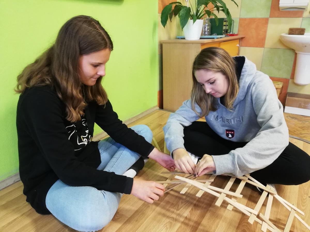 Postavte most bez spojovacího materiálu. Ano, tak zněl úkol pro žáky 9. ročníku v pracovních činnostech. K dispozici totiž měli pouze lamelky z bukového dřeva. Některé skupinky se vrhly do návrhu svých vlastních konstrukcí a některé hledaly inspiraci na internetu. Odolnost konstrukcí se testovala pomocí kilogramového závaží. Pro žáky bylo zajímavé zjištění, že existuje tzv. samonosný most, který navrhl Leonardo da Vinci.