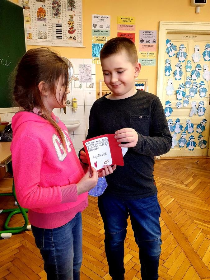 Na svátek sv. Valentýna jsme se v naší školní družině připravovali celý týden. Četli jsme si a povídali o historii dnešního svátku zamilovaných, která je velice zajímavá a dlouhá. Připomněli jsme si legendy, které za vznikem tohoto svátku stojí, včetně příběhu samotného sv. Valentýna. Dozvěděli jsme se celou řadu zajímavostí, které se týkají valentýnských tradic a oslav v jednotlivých zemích světa od Anglie až po Japonsko. A mezi tím vším jsme samozřejmě vyráběli valentýnská přání – pro maminky a tatínky, ale třeba také pro tajné lásky... Nezbývá než doufat, že nám ta srdíčková nálada vydrží až do jara. Nebo raději po celý rok.