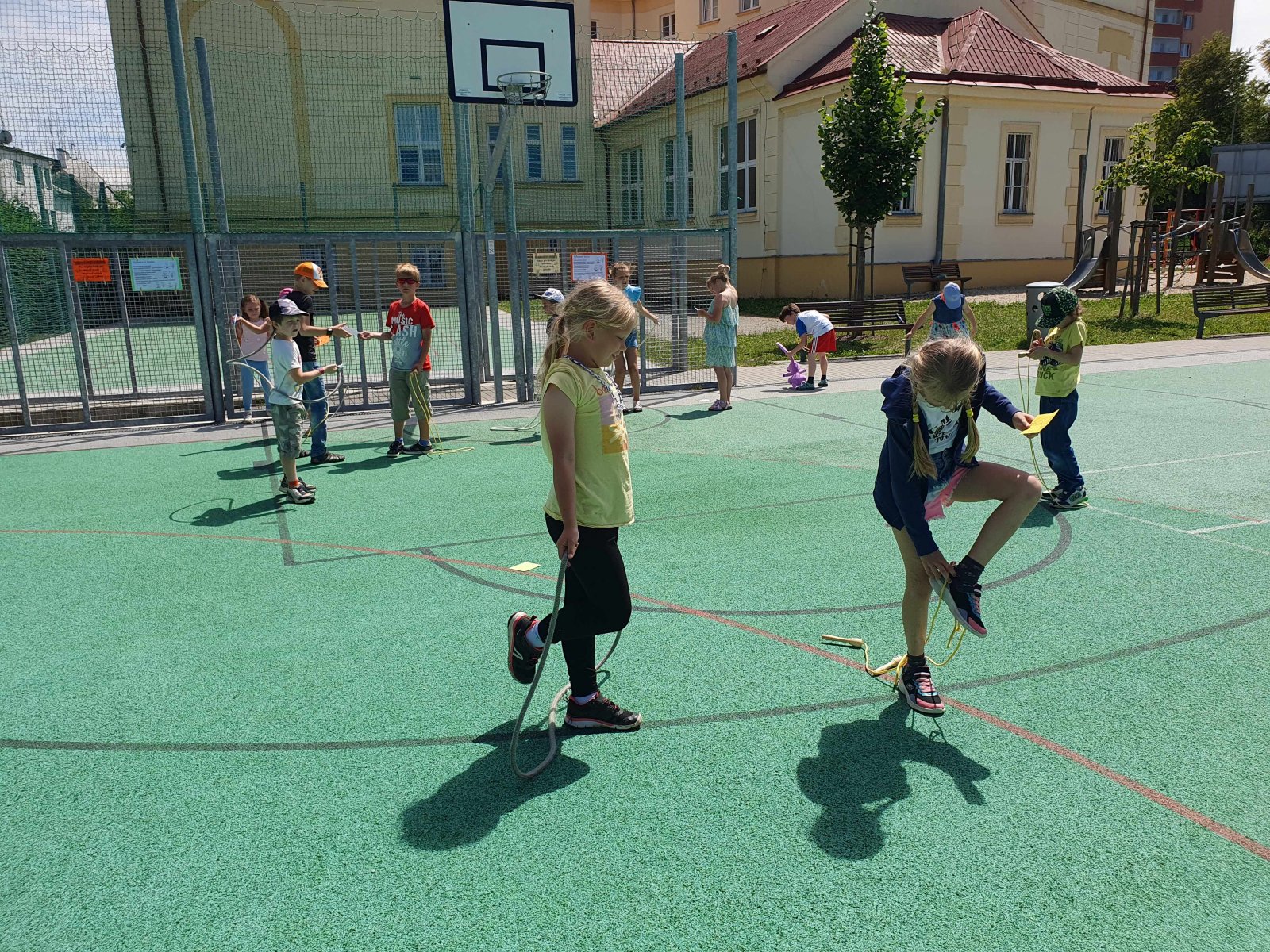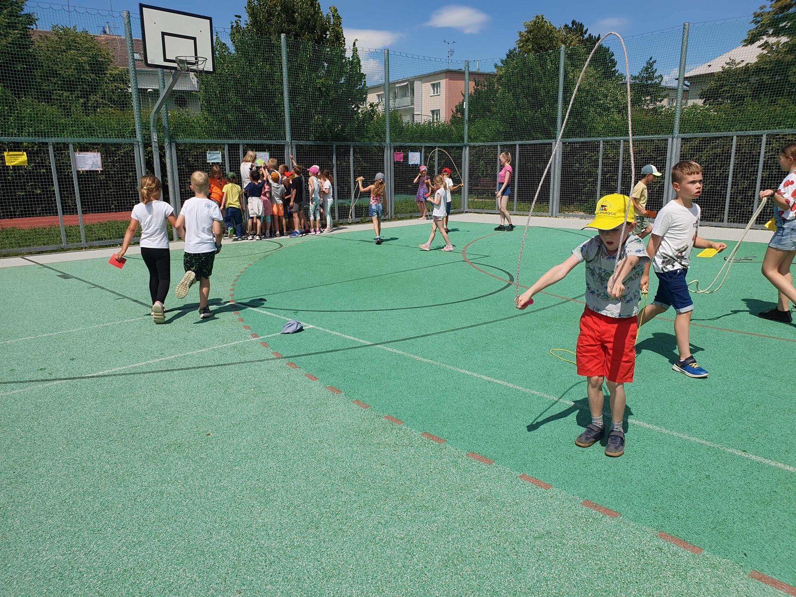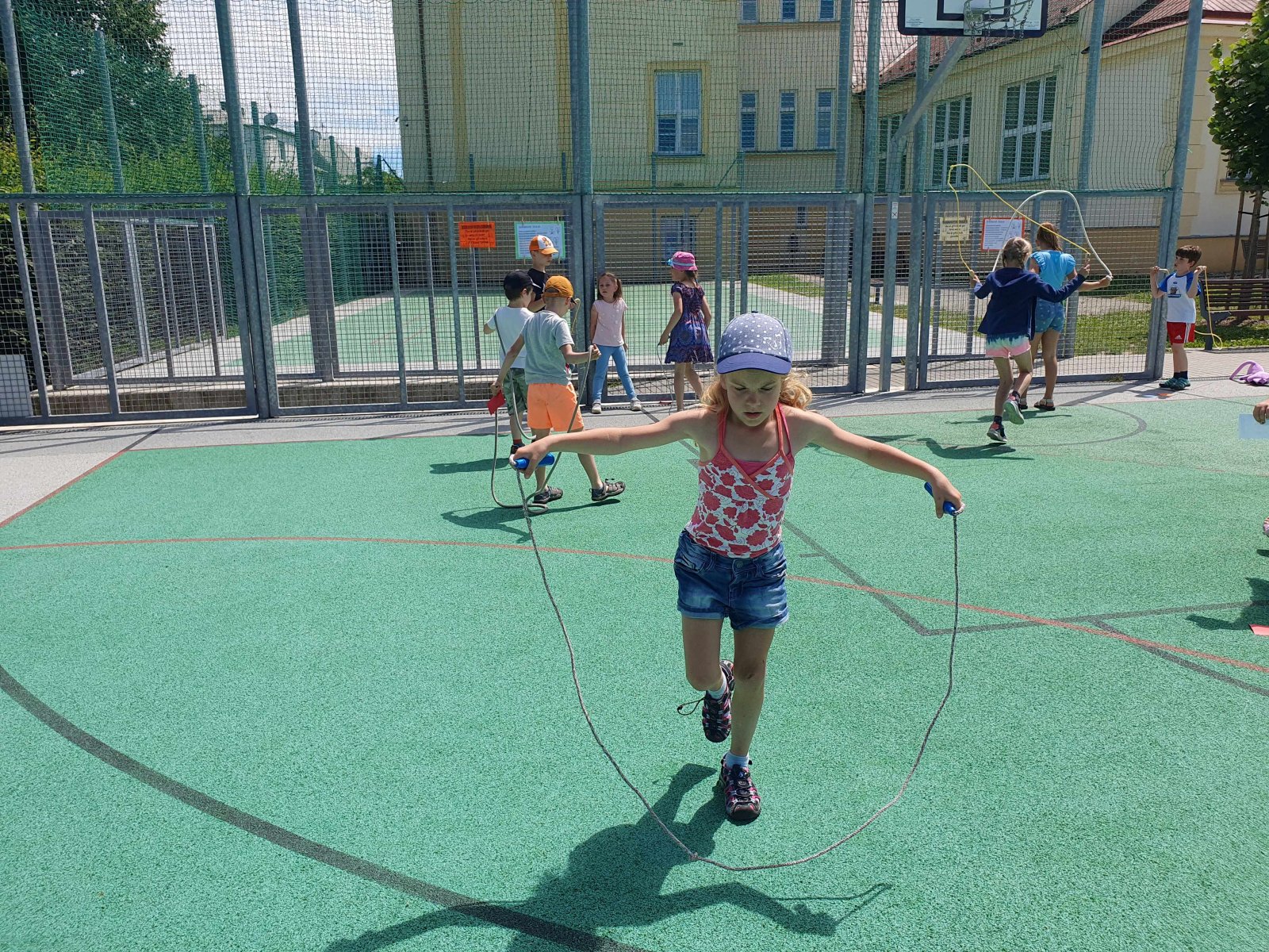 Závěrem měsíce června se téměř všechny děti zapsané do naší školní družinky zúčastnily během několika dní švihadlového klání, a to formou absolvování švihadlové školky. K tomuto účelu jsme využili prostory našeho školního hřiště. Nejprve jsme si s dětmi popovídali o významu skákání (švihání) přes švihadlo, poté jsme si metodicky vysvětlili všechny přeskoky a následně jsme se dali do skákání (švihání). Celkem 10 disciplín švihadlové školky děti pak během několika dní zvládly naprosto bravurně a s lehkostí. Přeskok snožmo, přeskok střídavě pravou a levou nohou, přeskok pravou, přeskok levou, přeskok vzad, přeskok zkřižmo, přeskok zkřižmo vzad i ve finále legendární vajíčko – to vše dohromady nečinilo dětem žádné potíže. Všechny disciplíny s naprostou lehkostí zvládlo z 91 účastníků celkem 52 děvčat a chlapců. A 39 dětí bylo úspěšných částečně. Popracujeme proto ještě na přeskocích vzad, dopilujeme přeskoky po pravé či levé noze, přeskoky zkřižmo a v příštím školním roce klání zopakujeme. A možná přidáme na rychlosti, pokusíme se zařadit dvojšvihy, trojšvihy, otočky. Skákání přes švihadlo totiž posiluje celé tělo, posiluje ruce, nohy, záda, ramena a svaly v každé části těla, šetří klouby, zlepšuje koordinaci těla a rovnováhu a dostává nás do dobré kondice a příjemné nálady z radosti z pohybu. A dobrá nálada nás všechny provázela po celou dobu našeho švihadlového školkování.