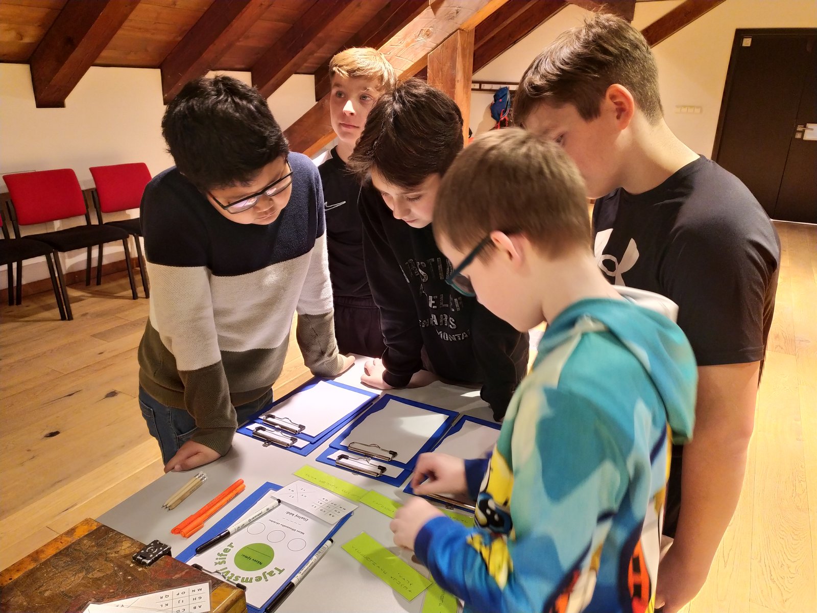 Naši páťáci vyrazili do Pevnosti poznání. Čekalo na ně velké pátrání v podobě programu Tajemství šifer. Měli tak možnost společnými silami rozřešit tajnou šifru. Tajemná cesta je vedla do různých sekcí. Všechny skupinky byly šikovné a všem se podařilo šifry rozluštit.
