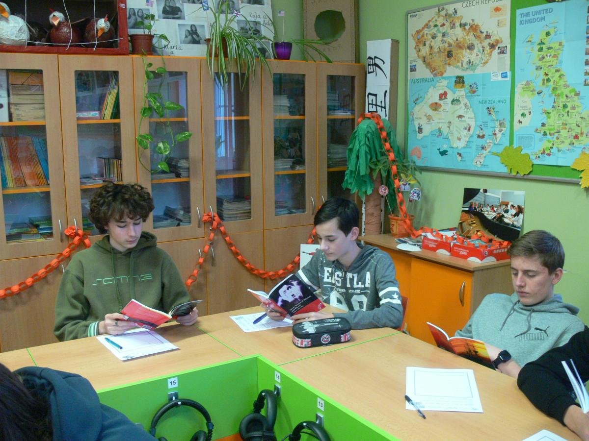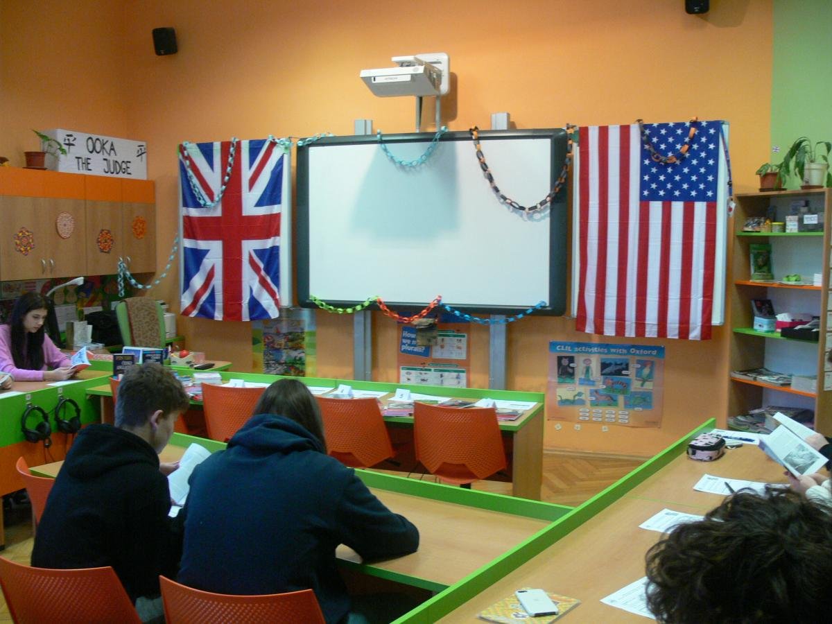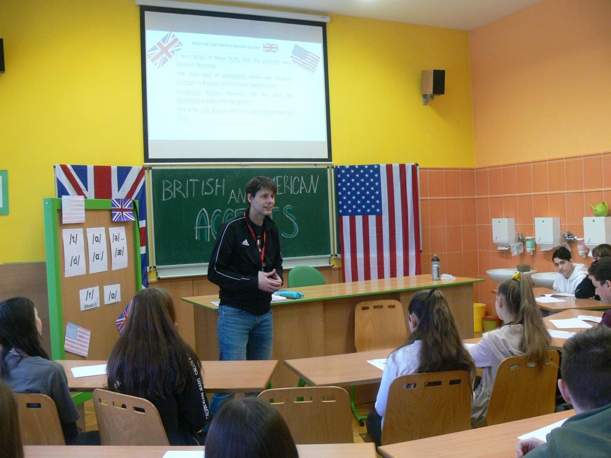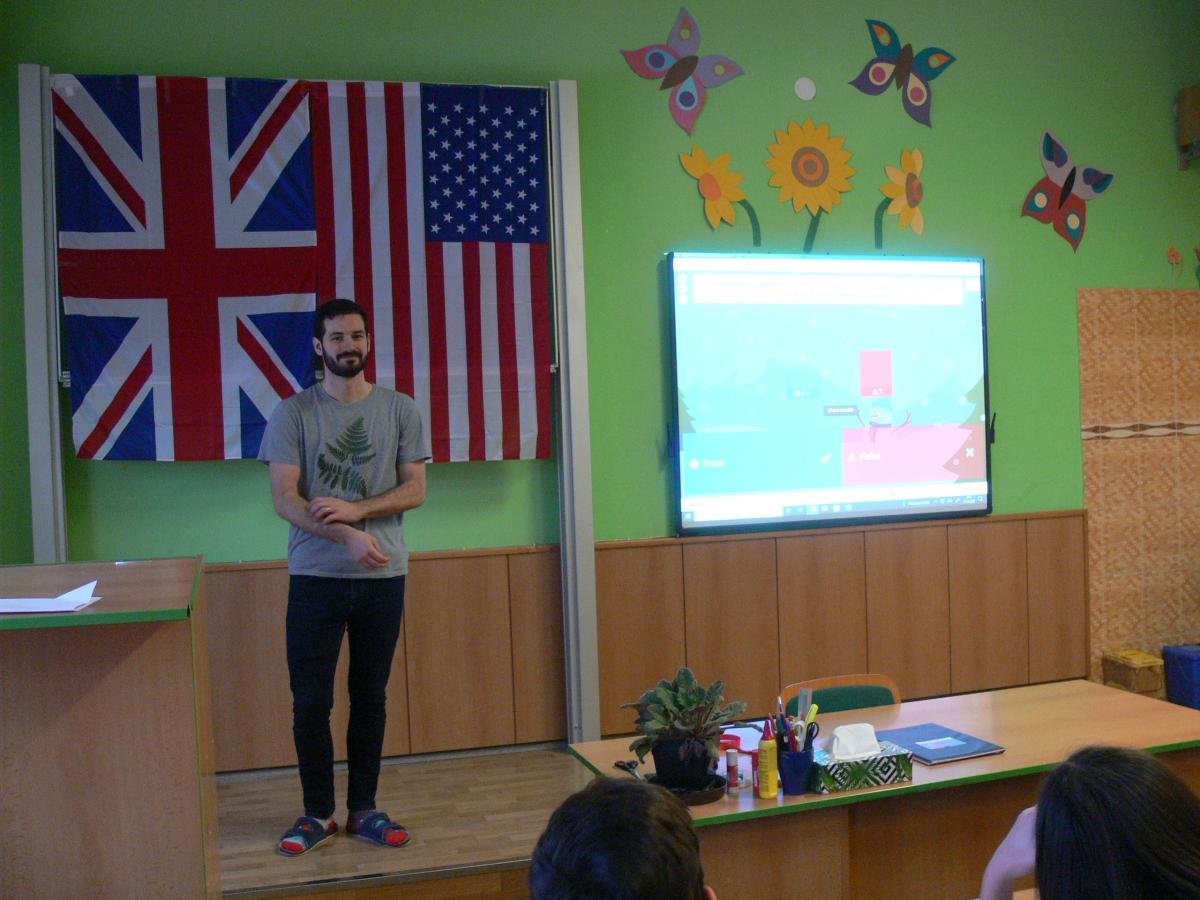 Po dvouleté odmlce jsme opět uspořádali oborový den s angličtinou, který se letos zaměřil na rozdíly mezi britskou a americkou angličtinou a to nejen jazykové, ale i kulturní a geografické. Nebylo toho málo, děti navštívily workshopy, které se věnovaly geografickým, historickým a kulturním rozdílům mezi oběma zeměmi, pracovaly jsme s mapami a obrázky. Dozvěděli jsme se také, v čem se liší slovní zásoba, hláskování nebo akcenty obou jazyků. Nezapomněli jsme ani na sporty, které se historicky pojí k oběma zemím - kluci z devátých tříd Jonas Lojda, Ondra Koupil a Vincent Lehmann se zhostili této dílny na výbornou a seznámili své spolužáky s druhy sportů, názvoslovím nebo sportovního vybavením. Šikovní osmáci Adélka Konrádová, Emča Zaťková spolu s Adamem Vrajem a Honzou Růčkou nám představili významné interprety britské a americké hudební scény, ve své dílně si připravili povídání o skupině One Direction a zpěvákovi Michaelu Jacksonovi. Podívali jsme se také do historie obou zemí spolu s Kahootem a ve čtenářské dílně jsme se ponořili do významných děl amerických i britských autorů, kterých lze v naší jazykové knihovničce nalézt celou stovku. První krůčky v angličtině dělali také naši nejmenší, seznámili jsme se s prvními slovíčky, číslicemi, zatančili jsme si, zahráli spousty her, a dokonce zahráli i divadlo. Pro starší děti z prvního stupně byly připraveny kvízové hry, zopakovali si spousty užitečných slovíček a nemohl chybět tanec, hry a zpěv. Celou školu jsme si pěkně vyzdobili vlaječkami, dekoracemi, řetězy a drobnými symboly a den s angličtinou jsme si pěkně užili. Už se těšíme na příští rok. A o čem bude??? No přece o ... Nechte se překvapit jako každý rok!