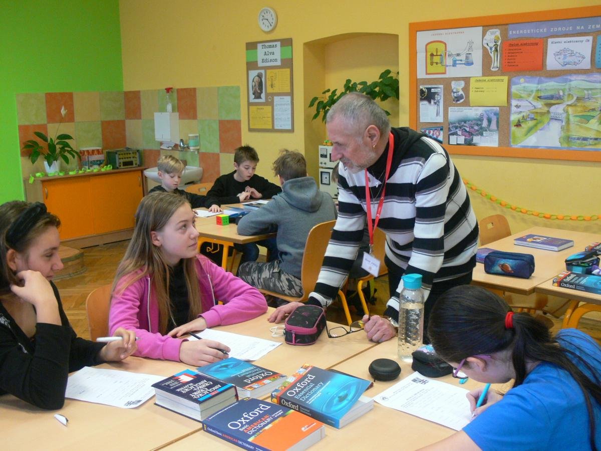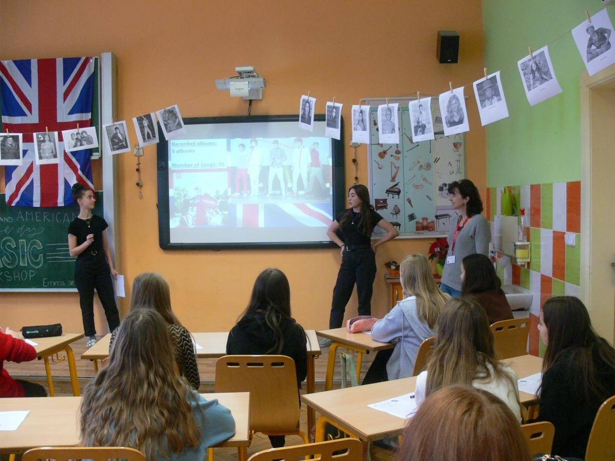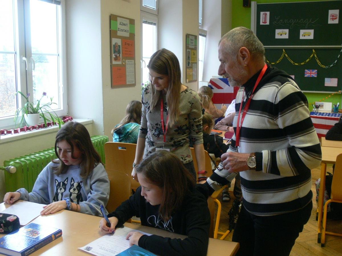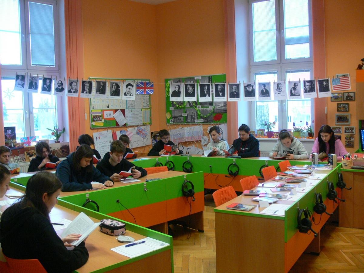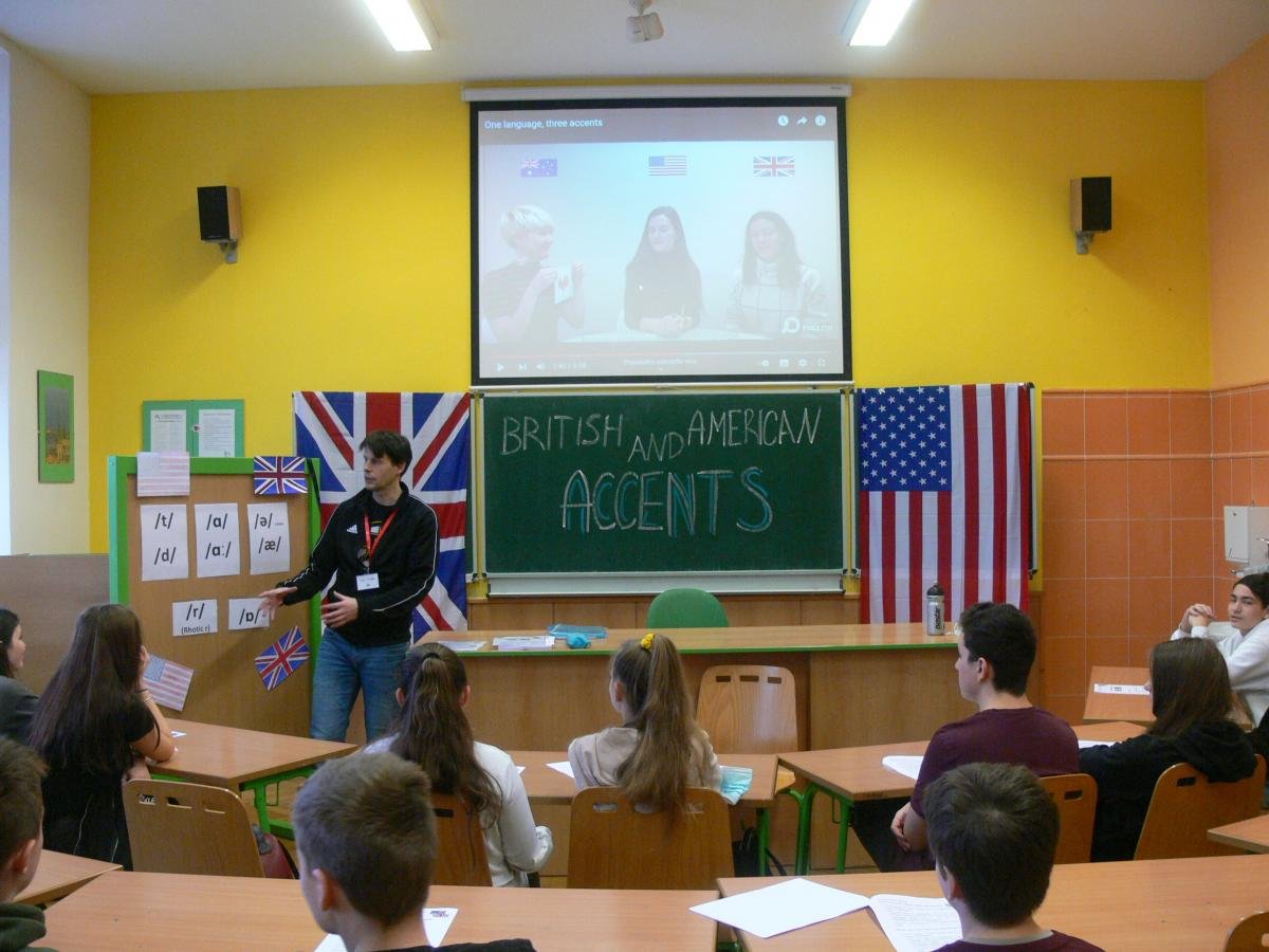 Po dvouleté odmlce jsme opět uspořádali oborový den s angličtinou, který se letos zaměřil na rozdíly mezi britskou a americkou angličtinou a to nejen jazykové, ale i kulturní a geografické. Nebylo toho málo, děti navštívily workshopy, které se věnovaly geografickým, historickým a kulturním rozdílům mezi oběma zeměmi, pracovaly jsme s mapami a obrázky. Dozvěděli jsme se také, v čem se liší slovní zásoba, hláskování nebo akcenty obou jazyků. Nezapomněli jsme ani na sporty, které se historicky pojí k oběma zemím - kluci z devátých tříd Jonas Lojda, Ondra Koupil a Vincent Lehmann se zhostili této dílny na výbornou a seznámili své spolužáky s druhy sportů, názvoslovím nebo sportovního vybavením. Šikovní osmáci Adélka Konrádová, Emča Zaťková spolu s Adamem Vrajem a Honzou Růčkou nám představili významné interprety britské a americké hudební scény, ve své dílně si připravili povídání o skupině One Direction a zpěvákovi Michaelu Jacksonovi. Podívali jsme se také do historie obou zemí spolu s Kahootem a ve čtenářské dílně jsme se ponořili do významných děl amerických i britských autorů, kterých lze v naší jazykové knihovničce nalézt celou stovku. První krůčky v angličtině dělali také naši nejmenší, seznámili jsme se s prvními slovíčky, číslicemi, zatančili jsme si, zahráli spousty her, a dokonce zahráli i divadlo. Pro starší děti z prvního stupně byly připraveny kvízové hry, zopakovali si spousty užitečných slovíček a nemohl chybět tanec, hry a zpěv. Celou školu jsme si pěkně vyzdobili vlaječkami, dekoracemi, řetězy a drobnými symboly a den s angličtinou jsme si pěkně užili. Už se těšíme na příští rok. A o čem bude??? No přece o ... Nechte se překvapit jako každý rok!