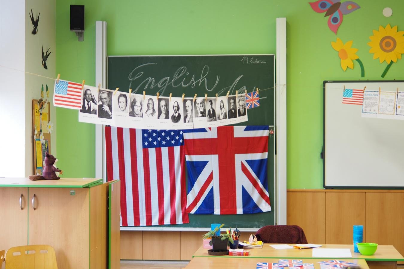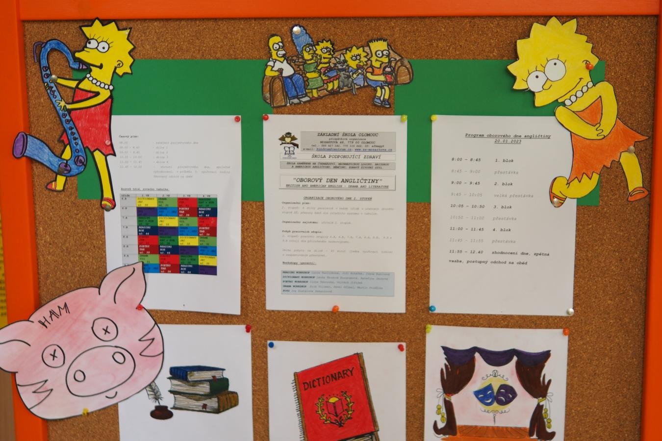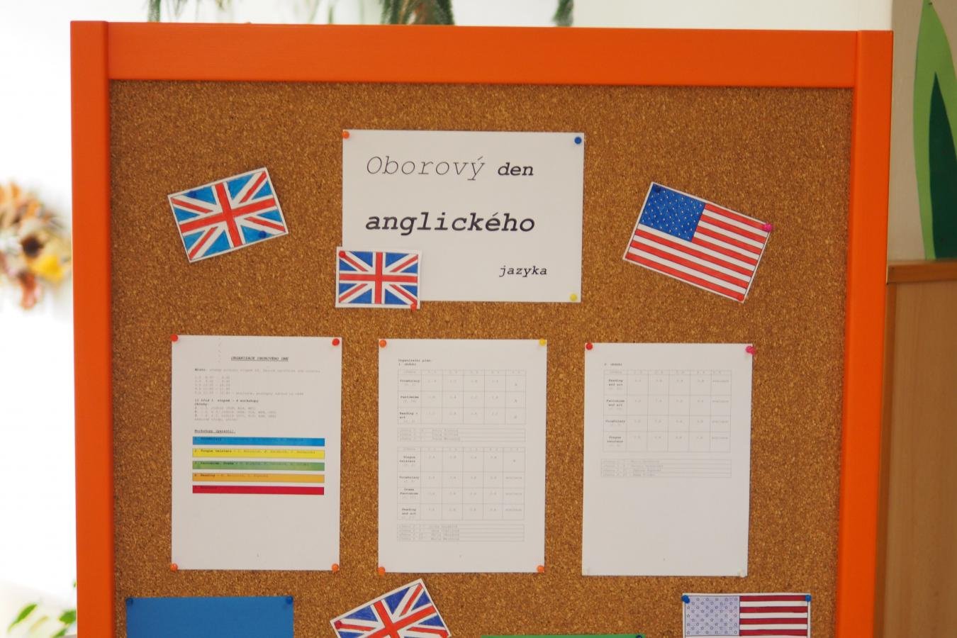 Letošní oborový den anglického jazyka se nesl opět v duchu britské a americké literatury. Nebylo toho málo, program dne byl skutečně nabitý. Děti navštívily workshopy, které se věnovaly práci se slovníčky, žáci se věnovali také soustředěné četbě širokého repertoáru anglických knížek a v dílnách poezie a dramatu se kreativně realizovali při tvorbě básniček. V neposlední řadě si děti po čase opět zahrály divadlo – podařilo se jim secvičit krátký skeč - inscenaci rapové verze Three Little Pigs (O třech malých prasátkách – rap verze). První krůčky v angličtině dělali také naši nejmenší, seznamovali se s prvními slovíčky, zatančili si a zahráli spousty her pro rozvoj angličtiny. Pro starší děti z prvního stupně byly připraveny kvízové hry, zopakovali si spoustu slovní zásoby a nemohl chybět ani tanec a zpěv. Celou školu jsme si pěkně vyzdobili vlaječkami, bannery, dekoracemi, řetězy a drobnými symboly a den s angličtinou jsme si pěkně užili. A o čem bude ten příští oborový den??? No přece o ... Nechte se překvapit!