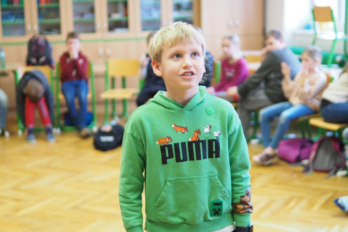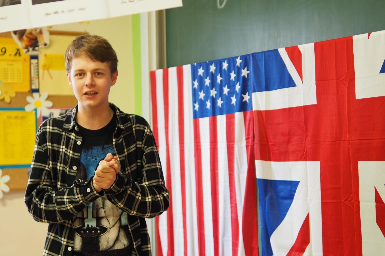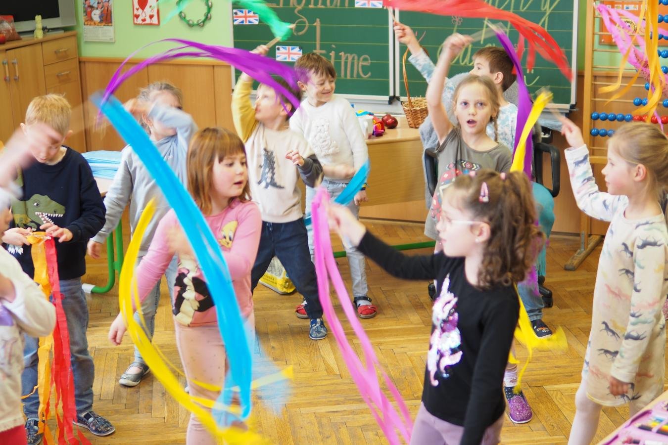 Letošní oborový den anglického jazyka se nesl opět v duchu britské a americké literatury. Nebylo toho málo, program dne byl skutečně nabitý. Děti navštívily workshopy, které se věnovaly práci se slovníčky, žáci se věnovali také soustředěné četbě širokého repertoáru anglických knížek a v dílnách poezie a dramatu se kreativně realizovali při tvorbě básniček. V neposlední řadě si děti po čase opět zahrály divadlo – podařilo se jim secvičit krátký skeč - inscenaci rapové verze Three Little Pigs (O třech malých prasátkách – rap verze). První krůčky v angličtině dělali také naši nejmenší, seznamovali se s prvními slovíčky, zatančili si a zahráli spousty her pro rozvoj angličtiny. Pro starší děti z prvního stupně byly připraveny kvízové hry, zopakovali si spoustu slovní zásoby a nemohl chybět ani tanec a zpěv. Celou školu jsme si pěkně vyzdobili vlaječkami, bannery, dekoracemi, řetězy a drobnými symboly a den s angličtinou jsme si pěkně užili. A o čem bude ten příští oborový den??? No přece o ... Nechte se překvapit!