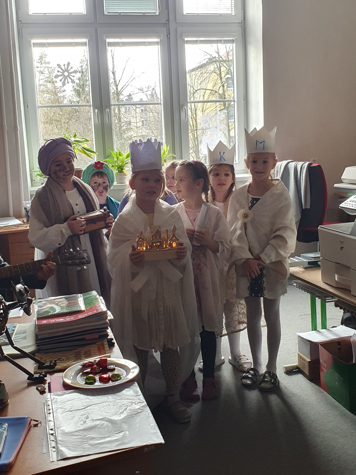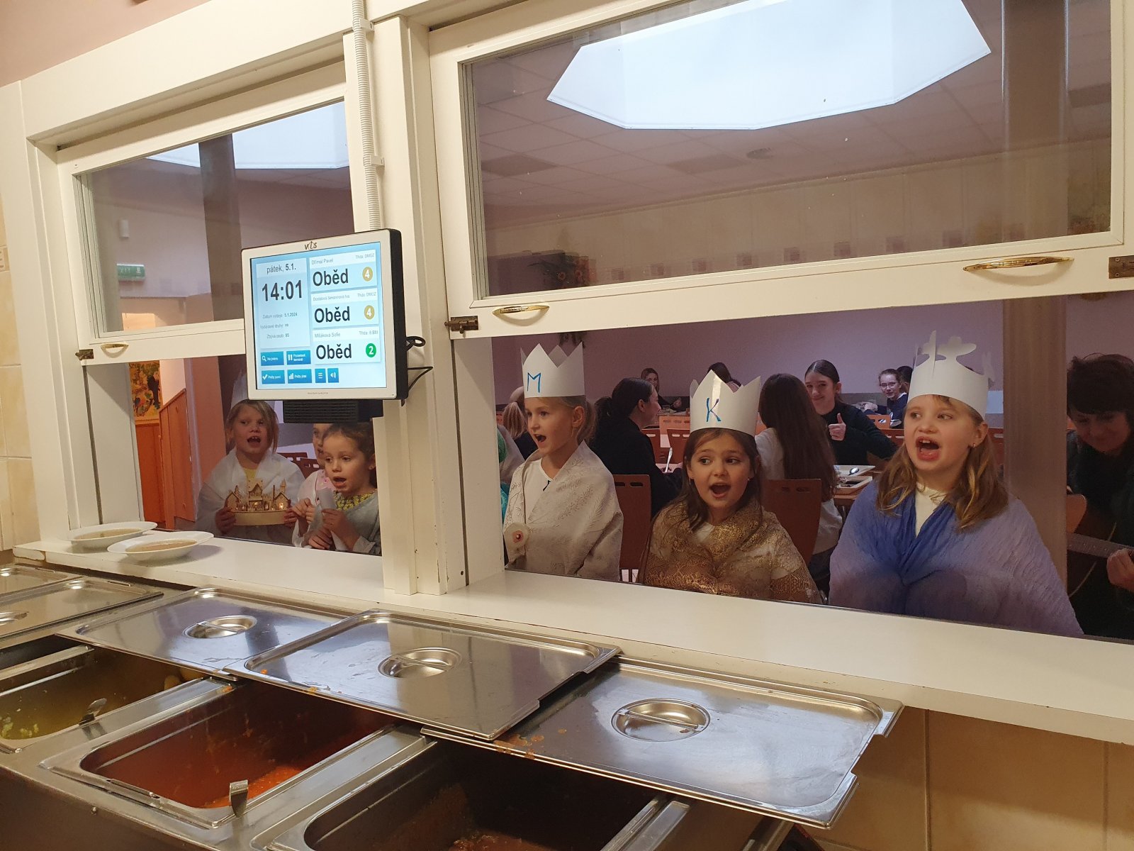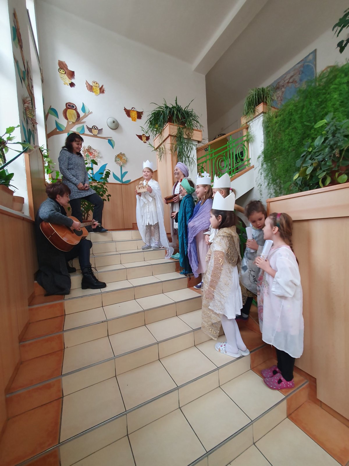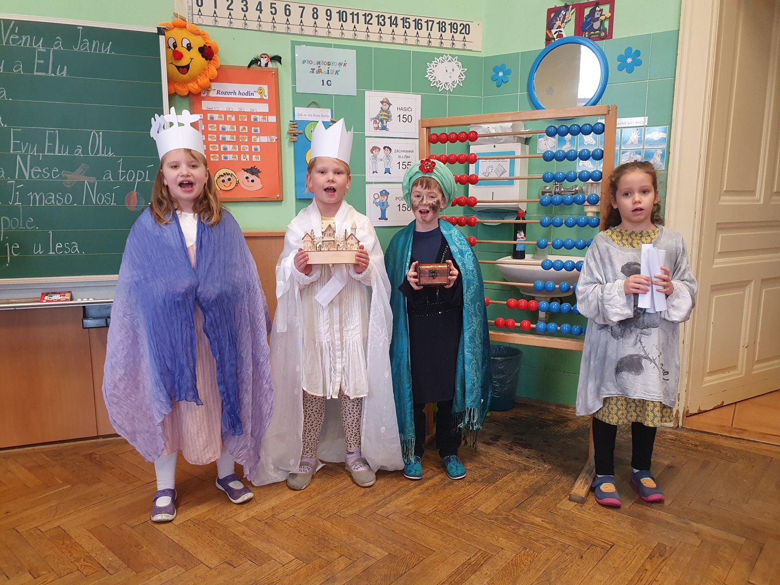 Zpívající party byly dvě a zpočátku se ve vinšování střídaly. Nakonec jsme to vyřešili po svém. Naše třídy a kanceláře navštěvovali hned dva Kašparové, dva Melicharové a dva Baltazarové současně. Ničemu a nikomu to nevadilo, protože všude mělo všech šest králů dveře otevřené. Zazpívali dokonce i rodičům ve vestibulu školy.