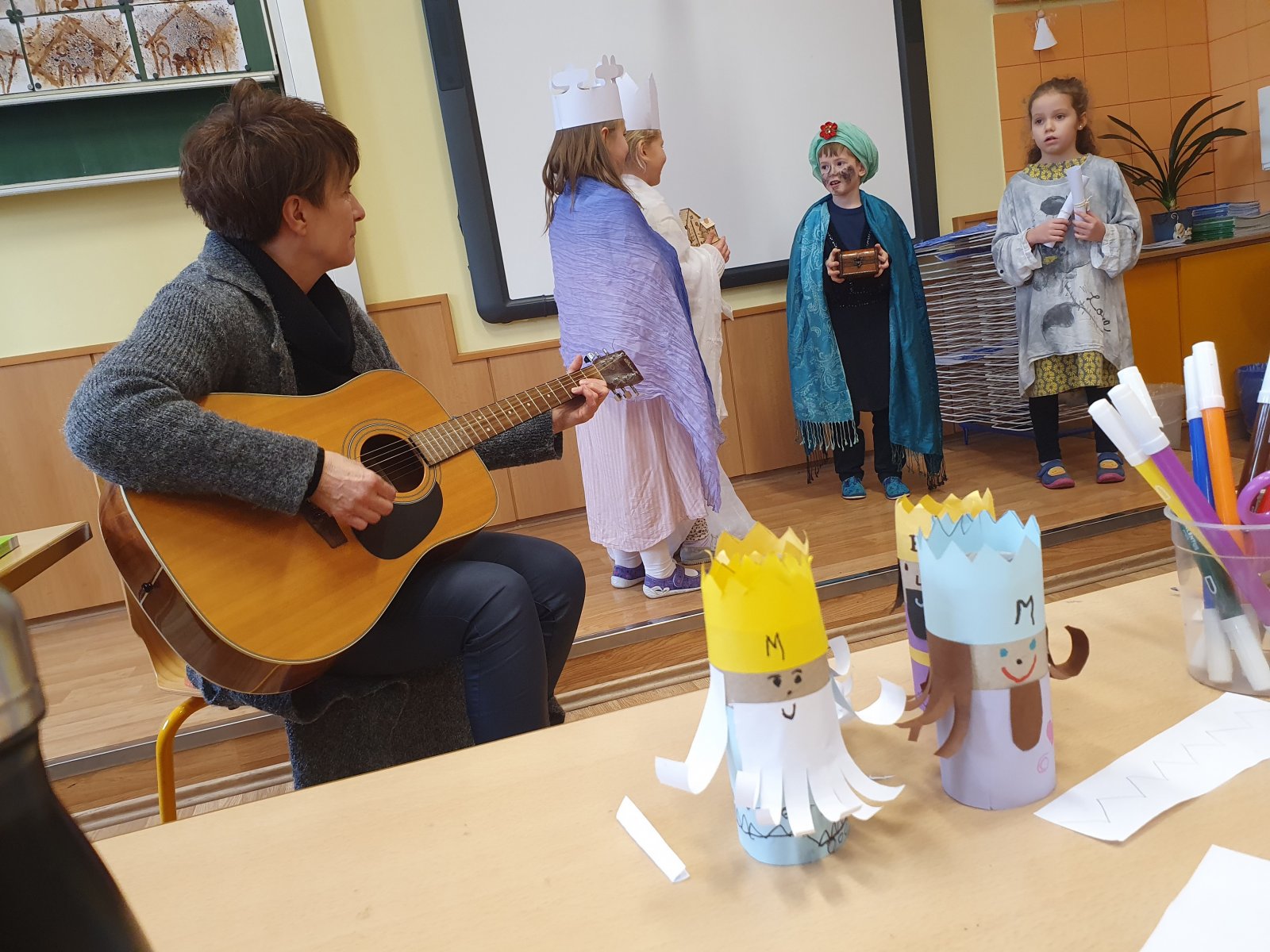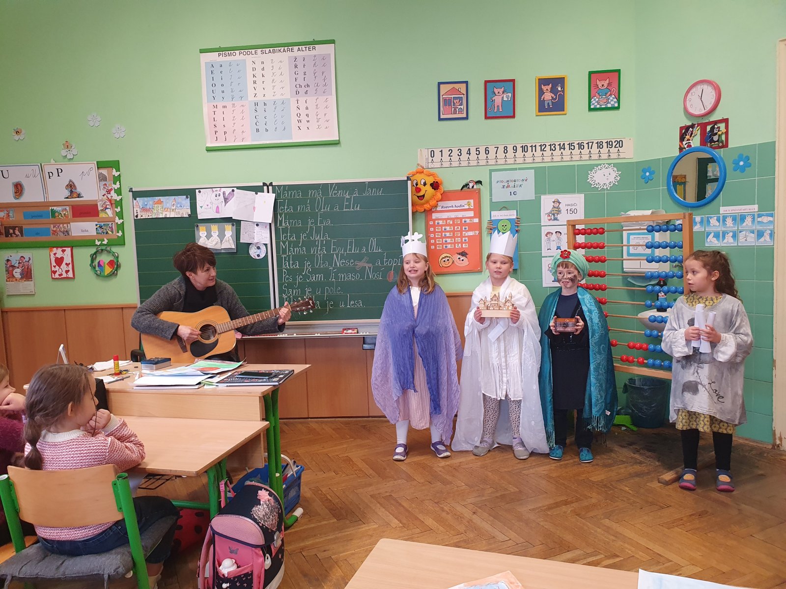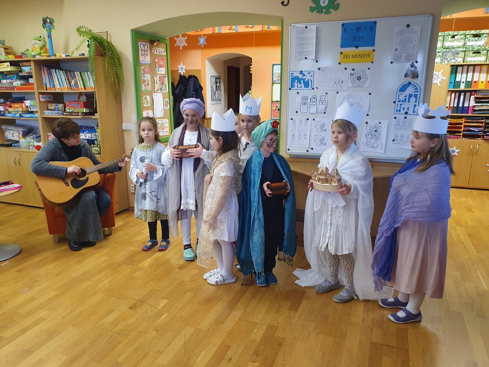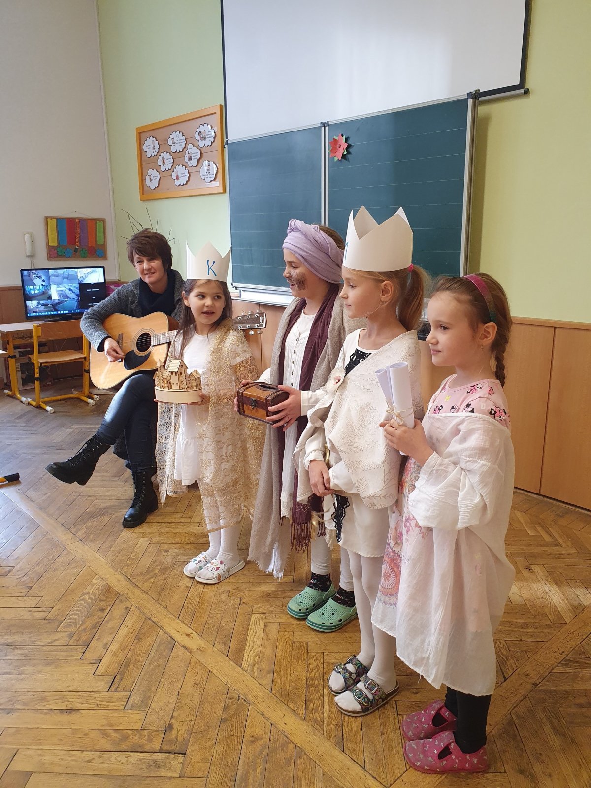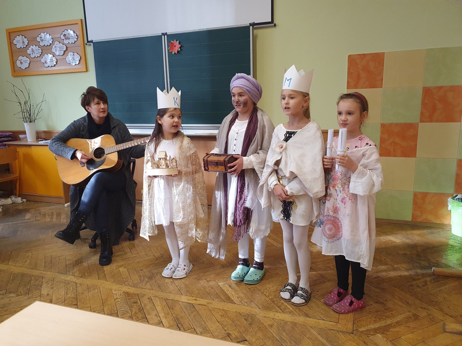 Zpívající party byly dvě a zpočátku se ve vinšování střídaly. Nakonec jsme to vyřešili po svém. Naše třídy a kanceláře navštěvovali hned dva Kašparové, dva Melicharové a dva Baltazarové současně. Ničemu a nikomu to nevadilo, protože všude mělo všech šest králů dveře otevřené. Zazpívali dokonce i rodičům ve vestibulu školy.