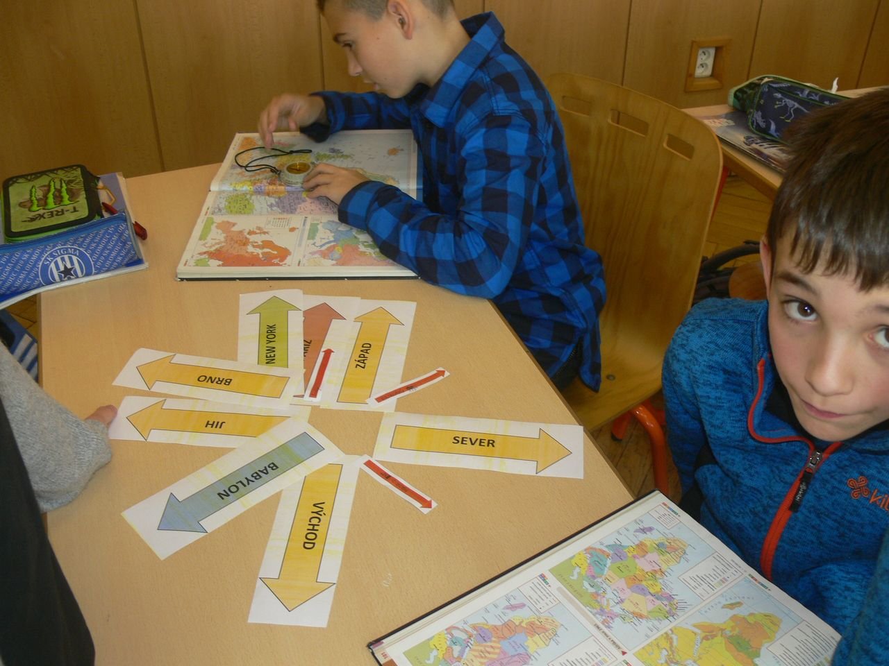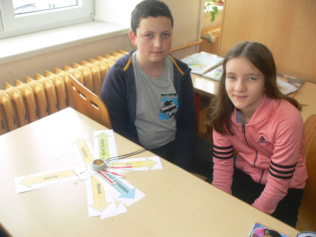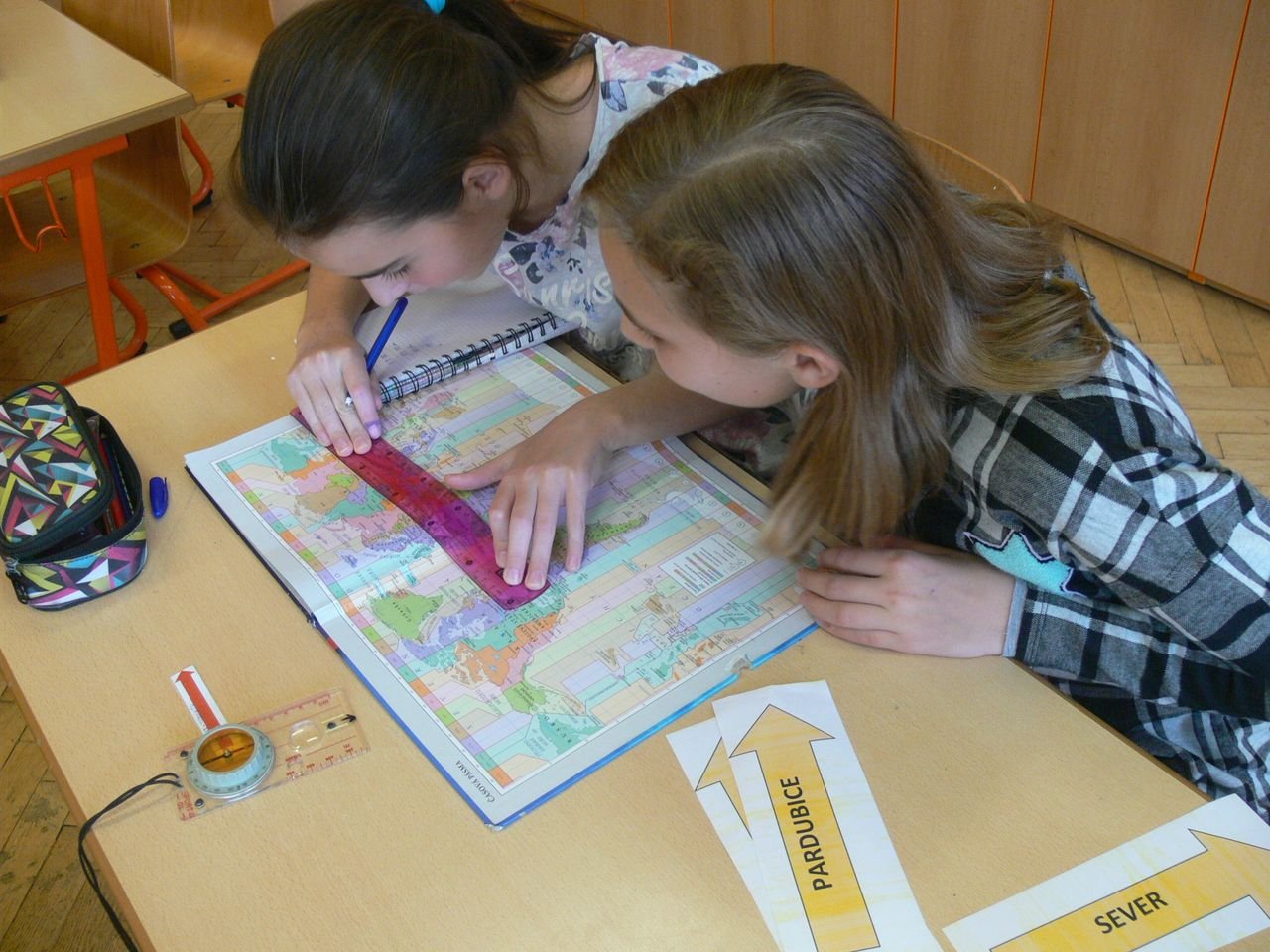 V šesté třídě se již žáci důkladněji seznámili s měřítkem mapy. Nyní k němu získali i novou dovednost, a sice práci s buzolou a azimutem. A k čemu je to dobré? Šestáci si zkusili vytvořit vlastní rozcestník ukazující konkrétní místa na naší planetě a vypočítali i vzdálenost, která je mezi naší aktuální polohou a daným místem. Seznámili se tak s tím, jak se vytváří orientační body, které nás navigují ve městech i na turistických trasách. Tak třeba brzy vyroste nějaký rozcestník i na zahradě některého z našich žáků.