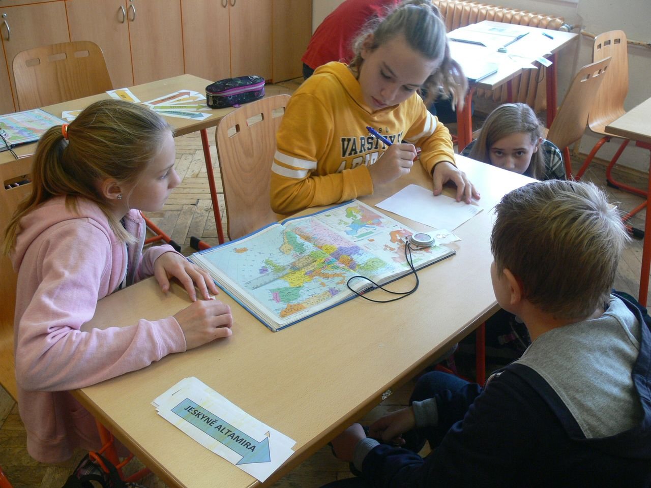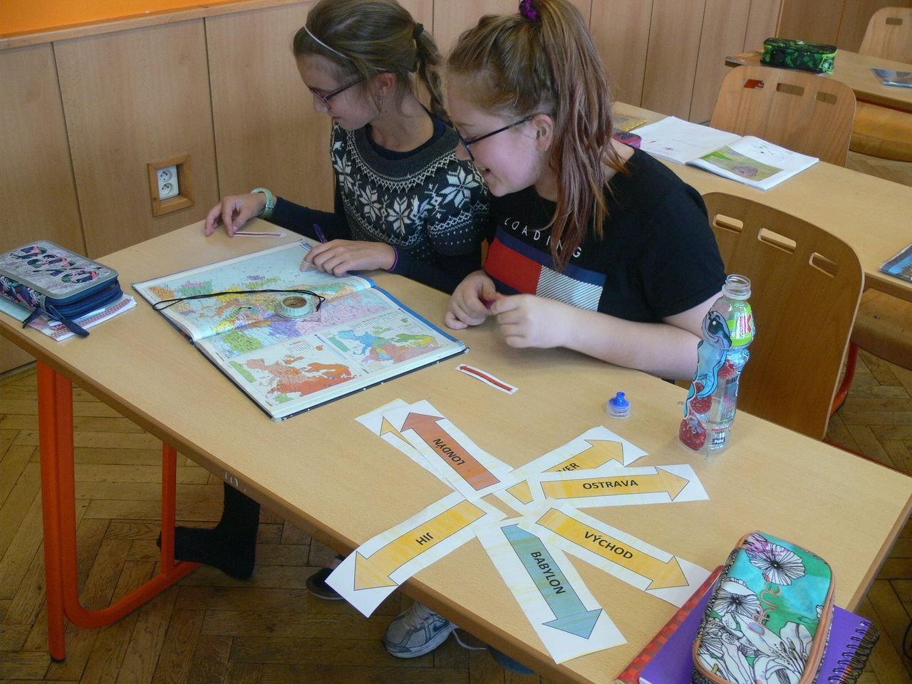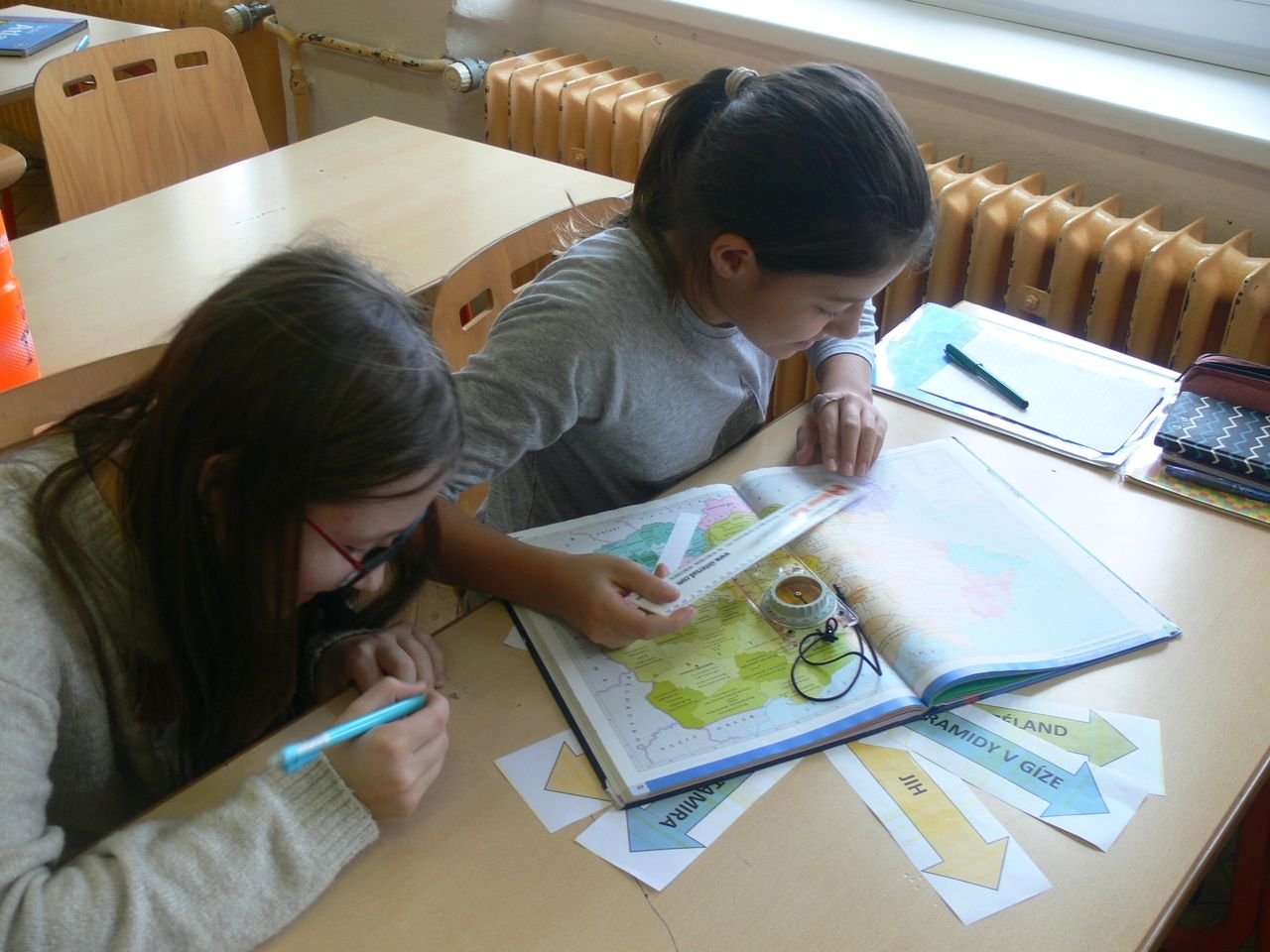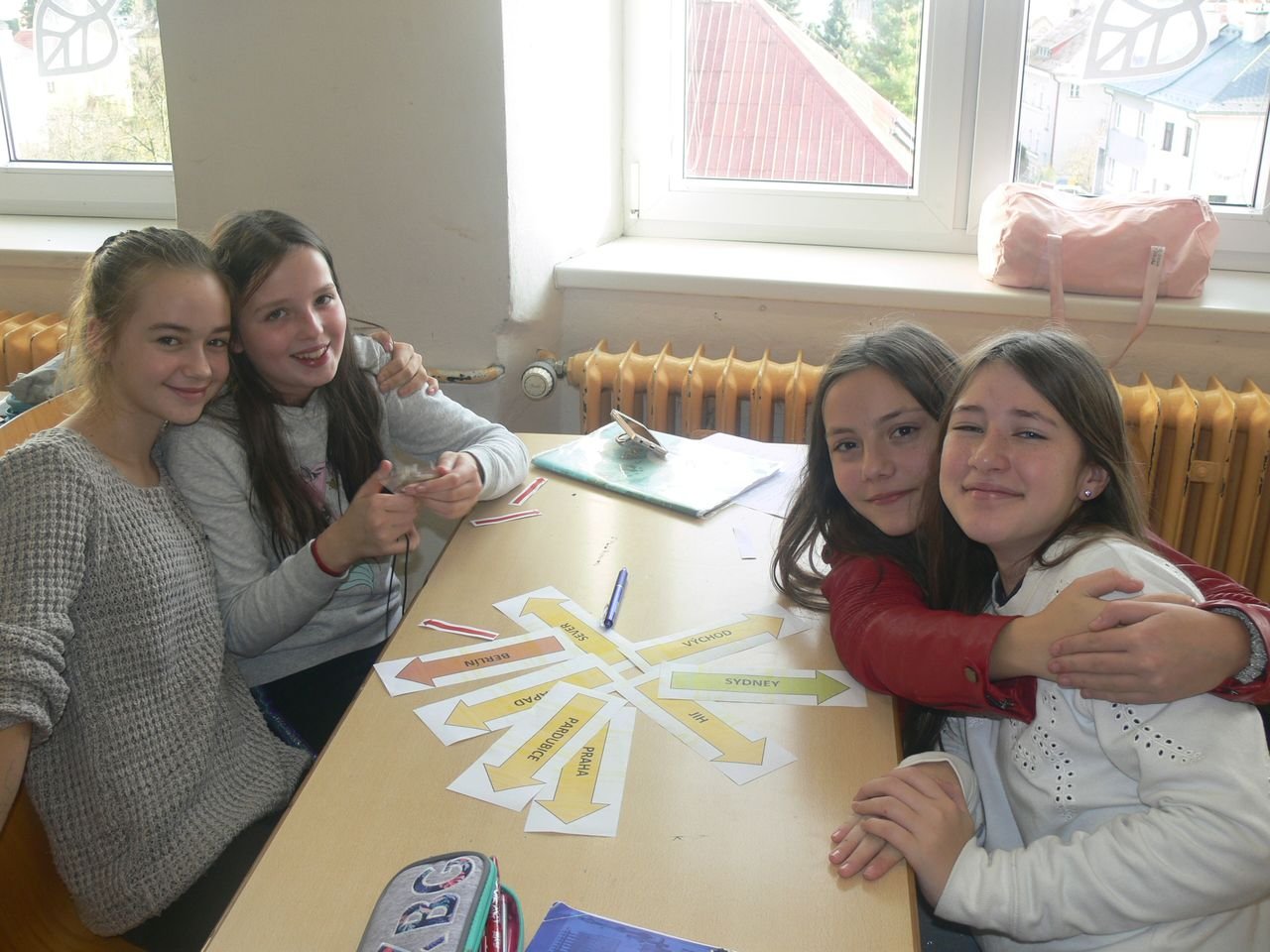 V šesté třídě se již žáci důkladněji seznámili s měřítkem mapy. Nyní k němu získali i novou dovednost, a sice práci s buzolou a azimutem. A k čemu je to dobré? Šestáci si zkusili vytvořit vlastní rozcestník ukazující konkrétní místa na naší planetě a vypočítali i vzdálenost, která je mezi naší aktuální polohou a daným místem. Seznámili se tak s tím, jak se vytváří orientační body, které nás navigují ve městech i na turistických trasách. Tak třeba brzy vyroste nějaký rozcestník i na zahradě některého z našich žáků.