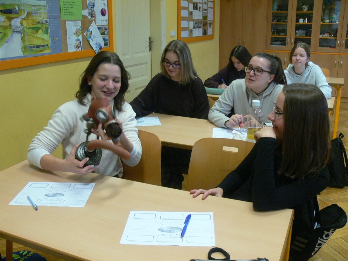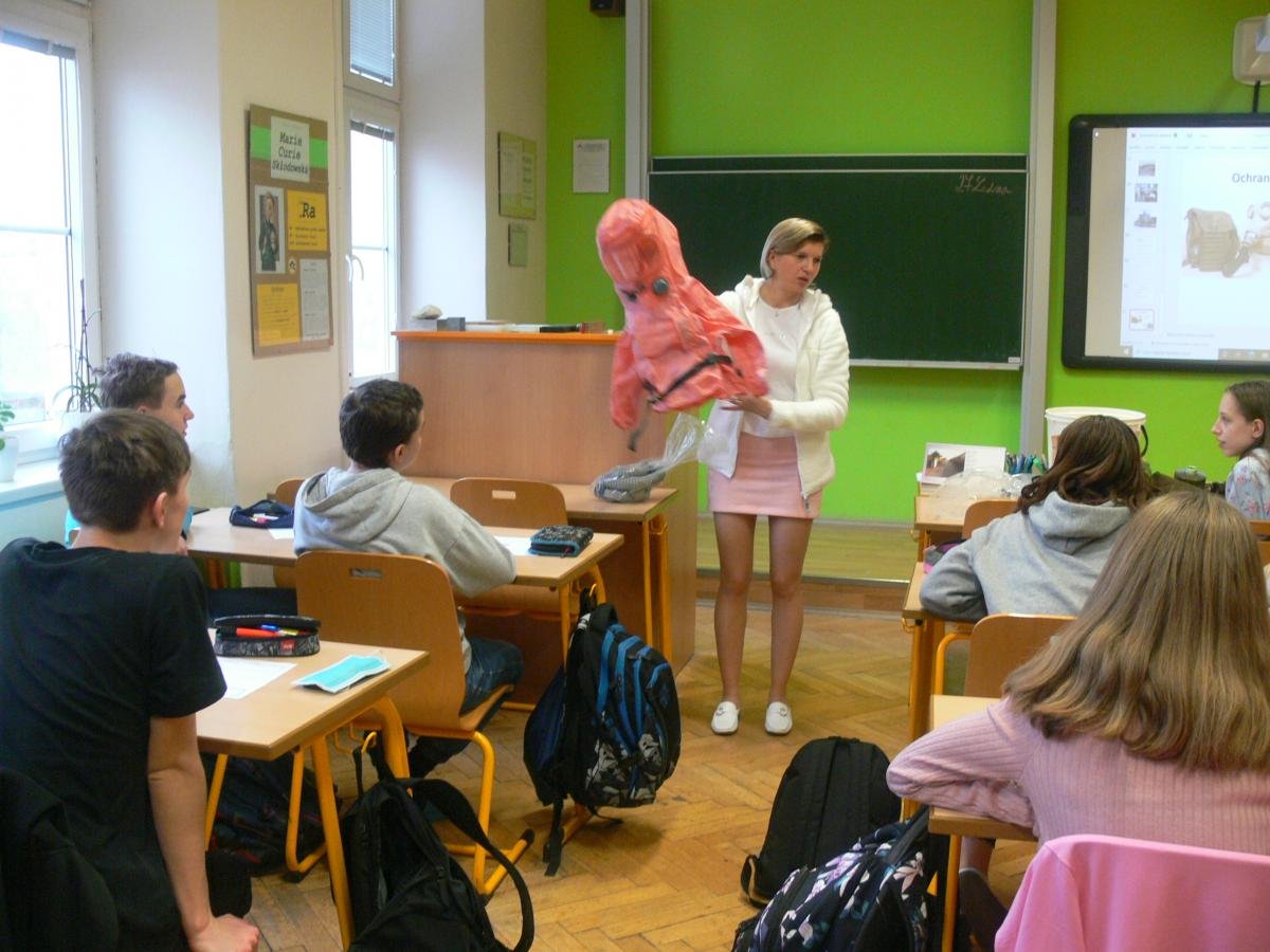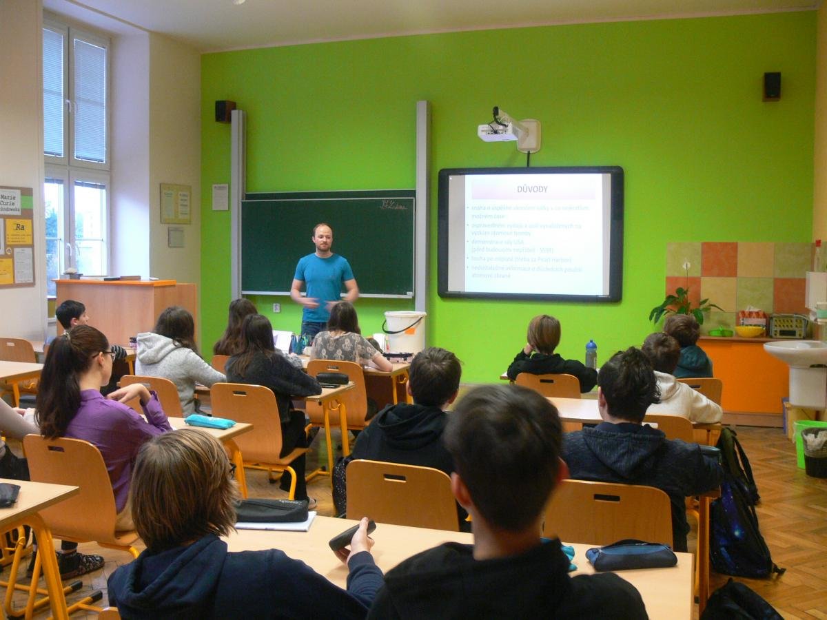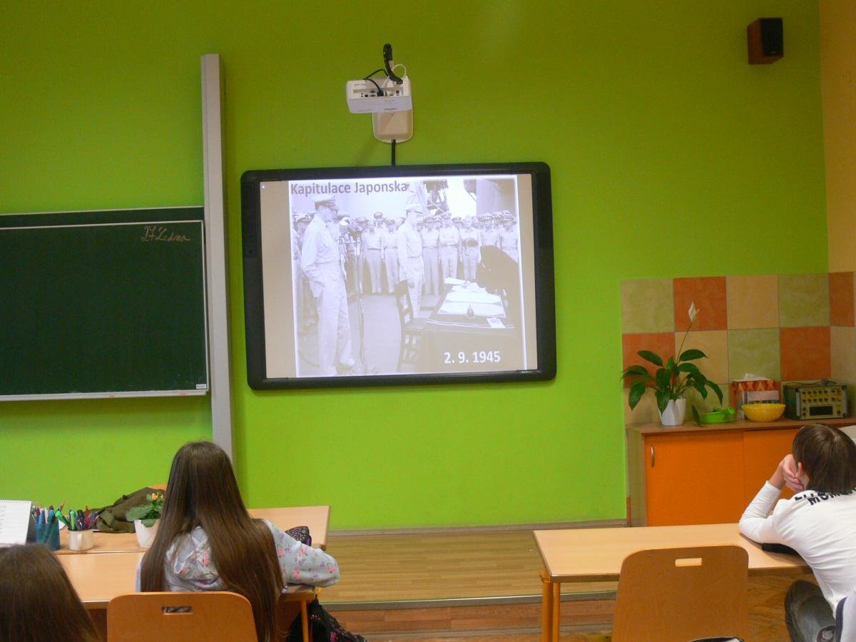 Na naší škole učíme v souvislostech napříč všemi předměty a rozvíjíme tím klíčové kompetence našich žáků. Co to však u nás znamená učit v souvislostech? Například žáci 9. ročníku aktuálně v dějepise „končí“ druhou světovou válku, ve fyzice řeší množství energie uvolněné při jaderné reakci a ze zeměpisu již znají polohu, přírodní poměry a zalidnění Japonska. Vyučující toho využili a připravili pro žáky společnou hodinu na téma, které se přímo nabízí a to - Svržení atomových bomb na Nagasaki a Hirošimu. Žáci tak měli možnost zamyslet se nad celou událostí z hlediska historie, fyziky i geografie a díky tomu ji lépe pochopit v souvislostech. Na závěr hodiny proběhla ukázka plynových masek, diskuze a zamyšlení nad hodnotou míru.