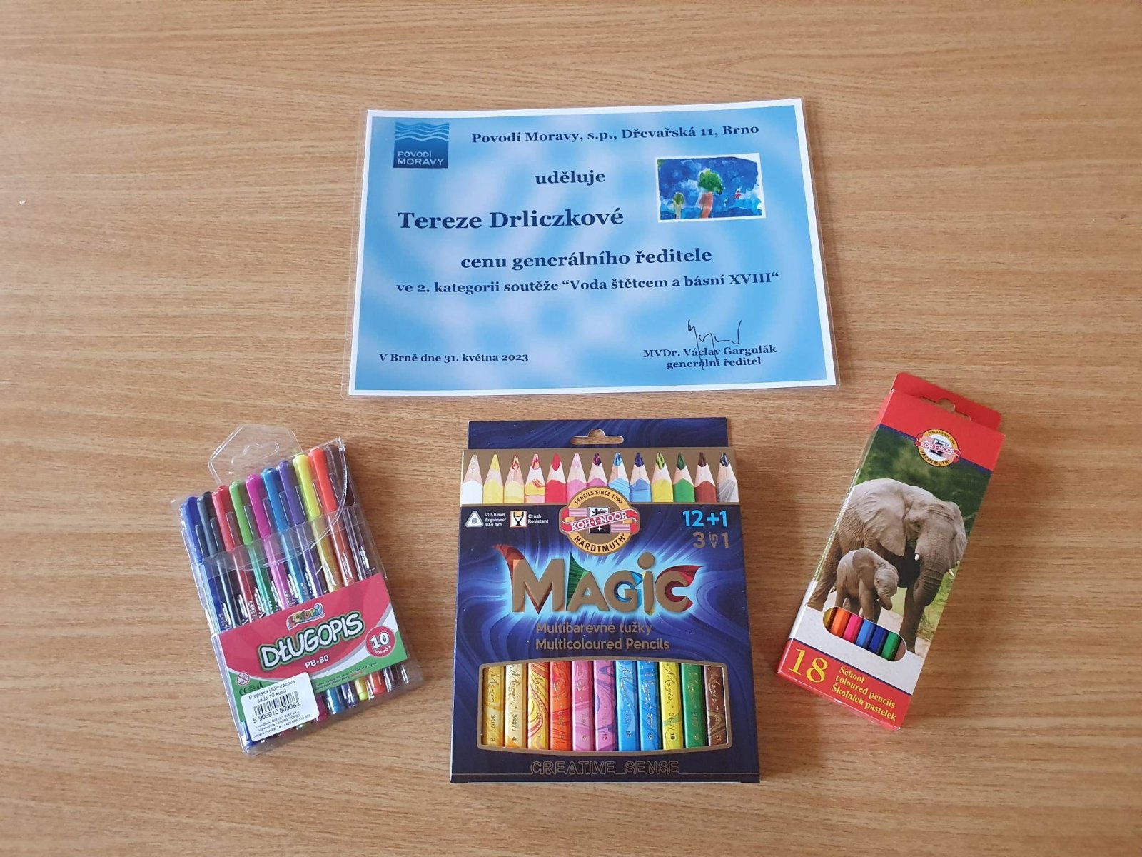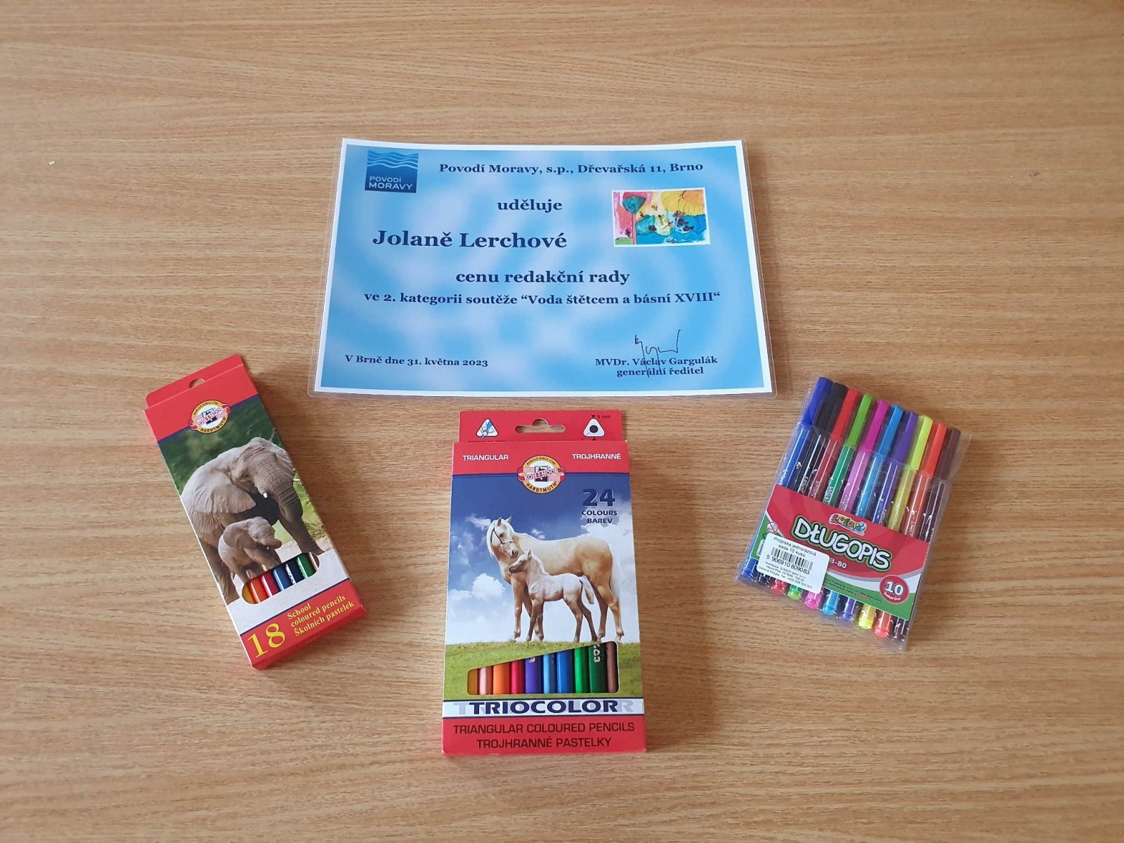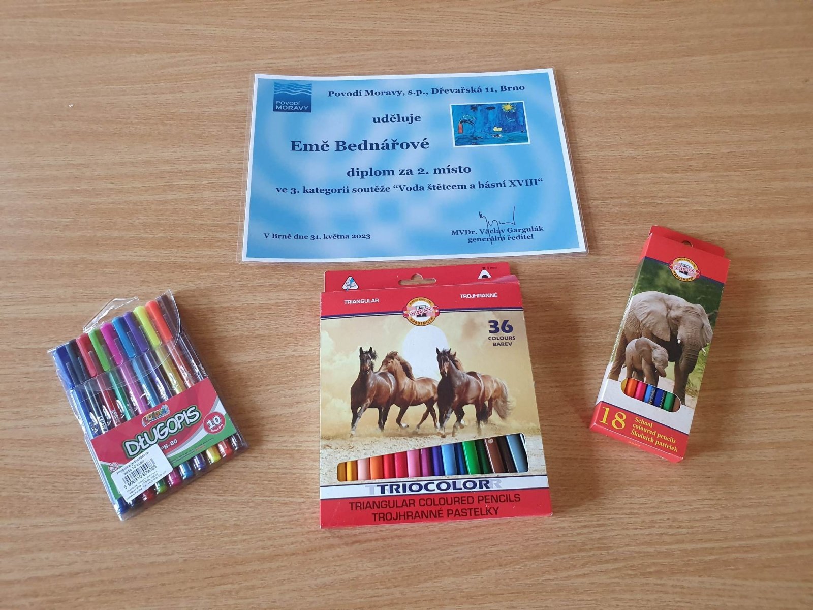 Děti ze školní družiny se pravidelně zapojují do soutěže Voda štětcem a básní, kterou vyhlašuje Povodí Moravy, s.p. Tématem letošního ročníku byla Živá voda. Do soutěže se zapojilo celkem 103 škol, které zaslaly neuvěřitelných 900 děl. Oceněno bylo 139 prací.