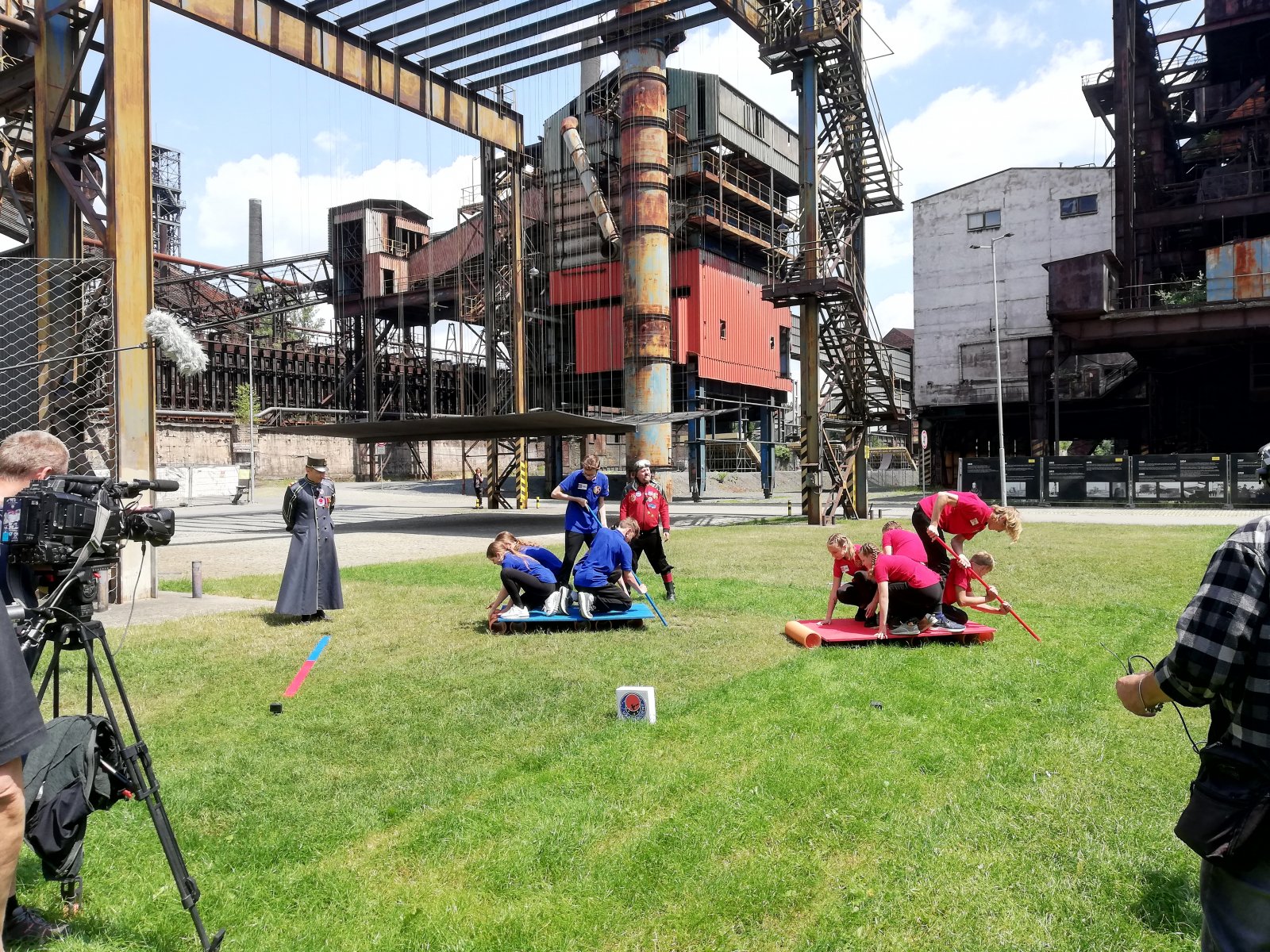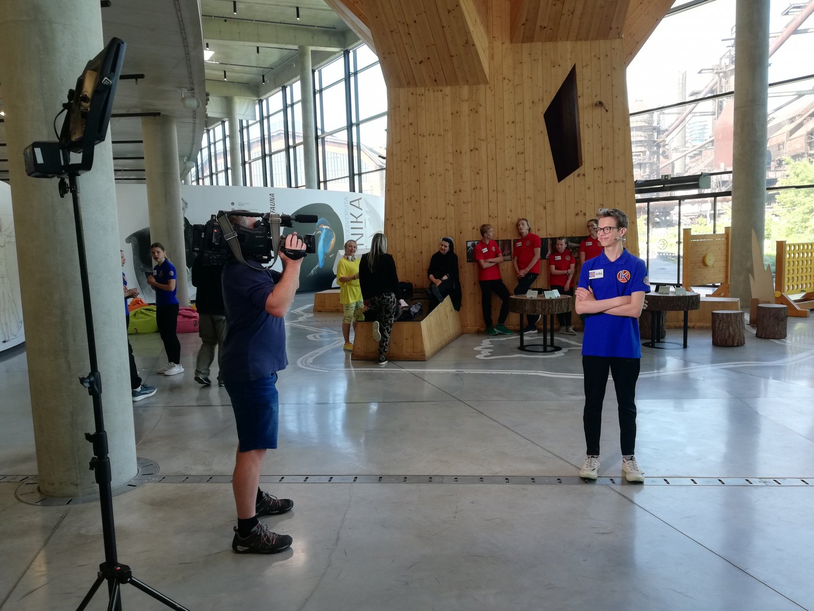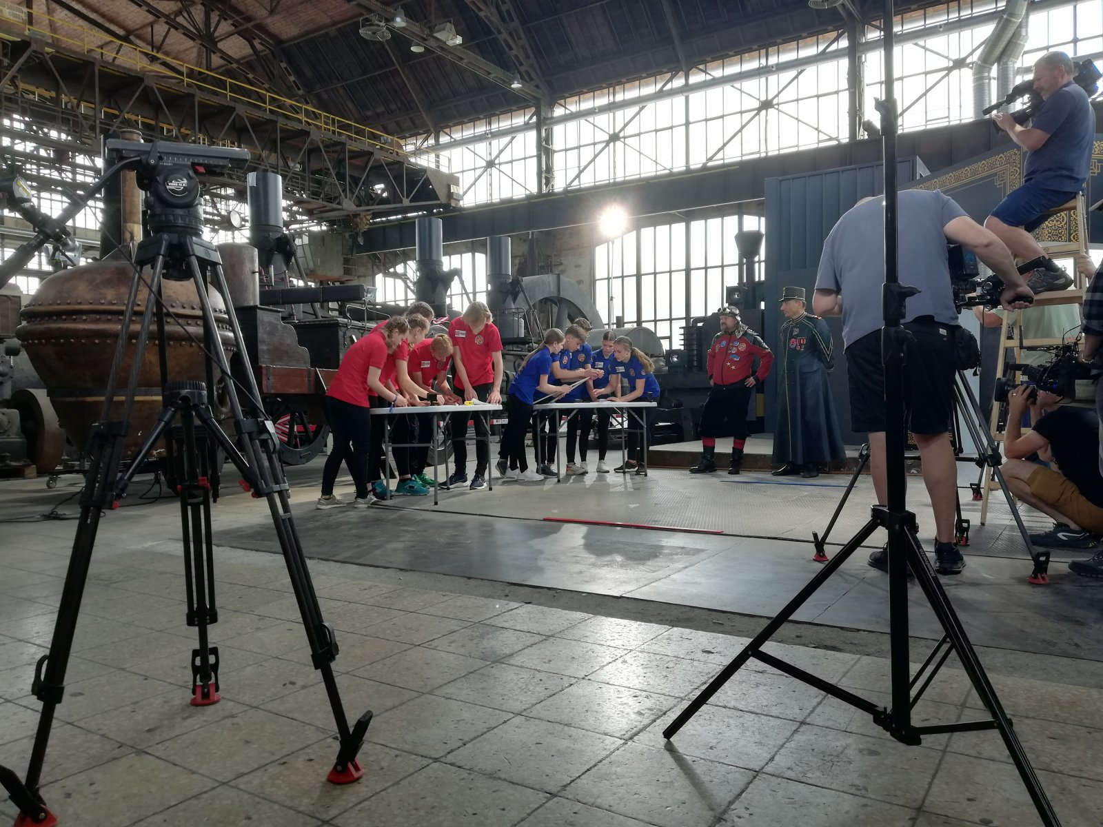 Naši žáci 8. ročníku se v úterý 13. června vypravili v brzkých ranních hodinách vlakem do Ostravy na natáčení soutěžního pořadu České televize s názvem „Už tam budem?“. Natáčení probíhalo ve vědeckotechnickém centru Velký svět techniky v Dolních Vítkovicích. Soutěžní disciplíny byly všestranné, body v nich se daly získat buď logikou, dovednostmi, anebo dokonce i čirou náhodou. Jak to celé dopadlo? Sledujte po prázdninách na programu Déčko České televize.