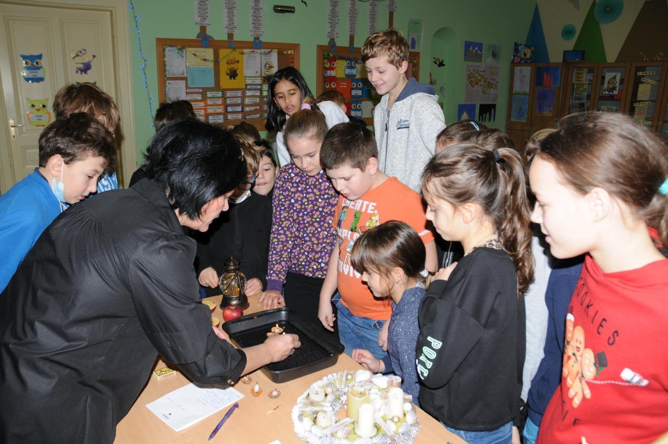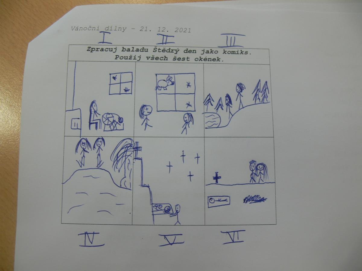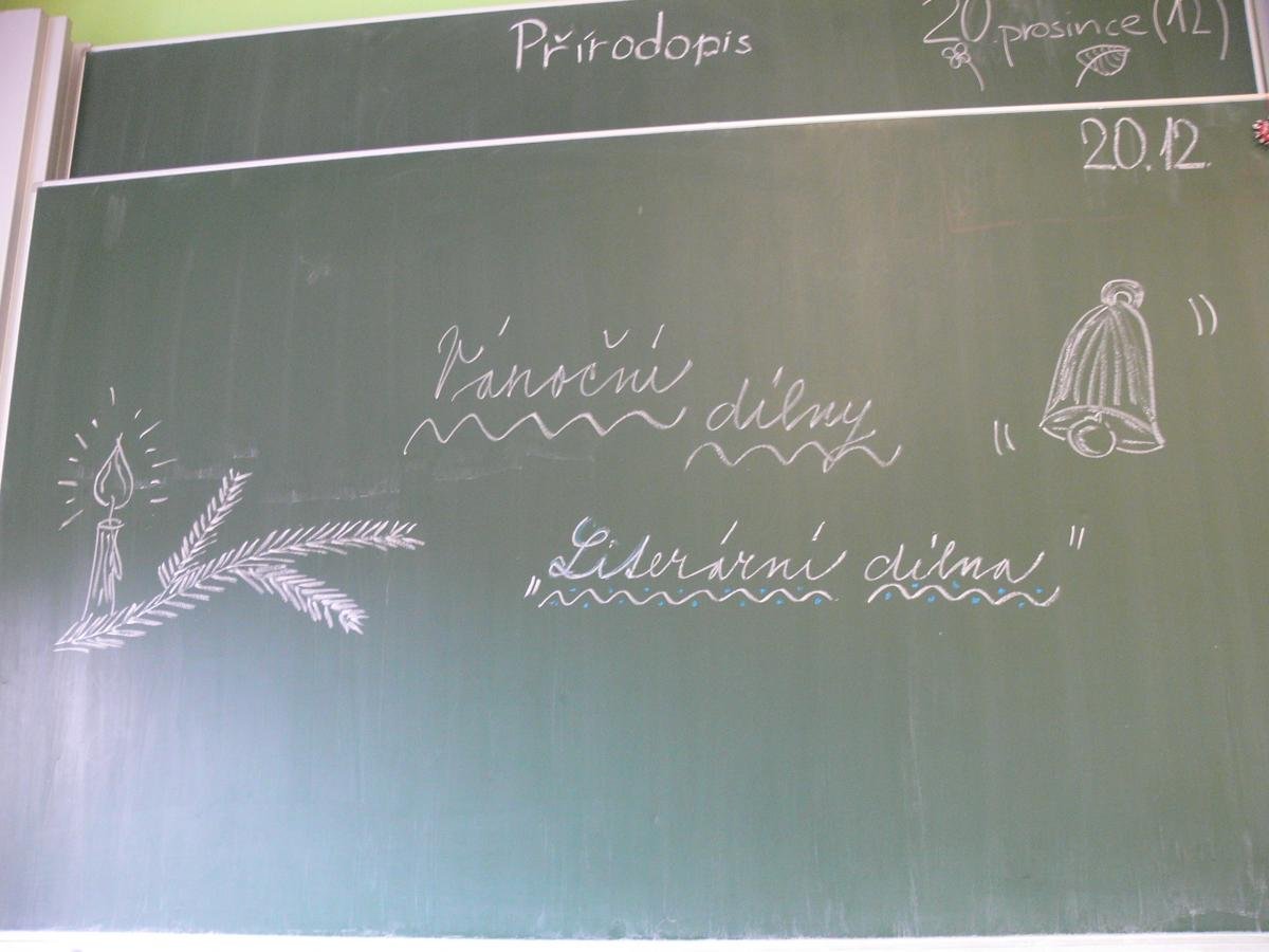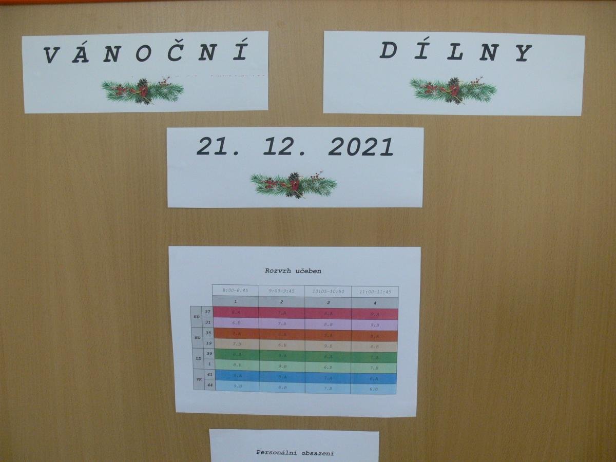 Děti měly možnost nabýt nové poznatky ve čtyřech dílnách – na prvním stupni v hudební dílně, literární dílně, výtvarné dílně a štědrovečerním čarování. Prostřednictvím zpívání, rozjímání, vyprávění a vyrábění si všichni navodili atmosféru vánočních svátků.