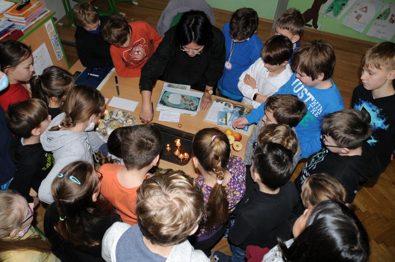 Na čtyřech stanovištích se seznámili například s historií a původem vánočního cukroví a stromečku, s rozmanitostí štědrovečerní večeře, vyrobili si vánoční přání, v historické dílně si žáci představili Vánoce z pohledu pravoslavné církve, judaismu, buddhismu a islámu, ve vánočním kvízu si odpočinuli a zahráli si kvíz orientovaný na vánoční pohádky a písně a v literární dílně pracovali s textem, audio a video ukázkou balady Karla Jaromíra Erbena - Štědrý den.