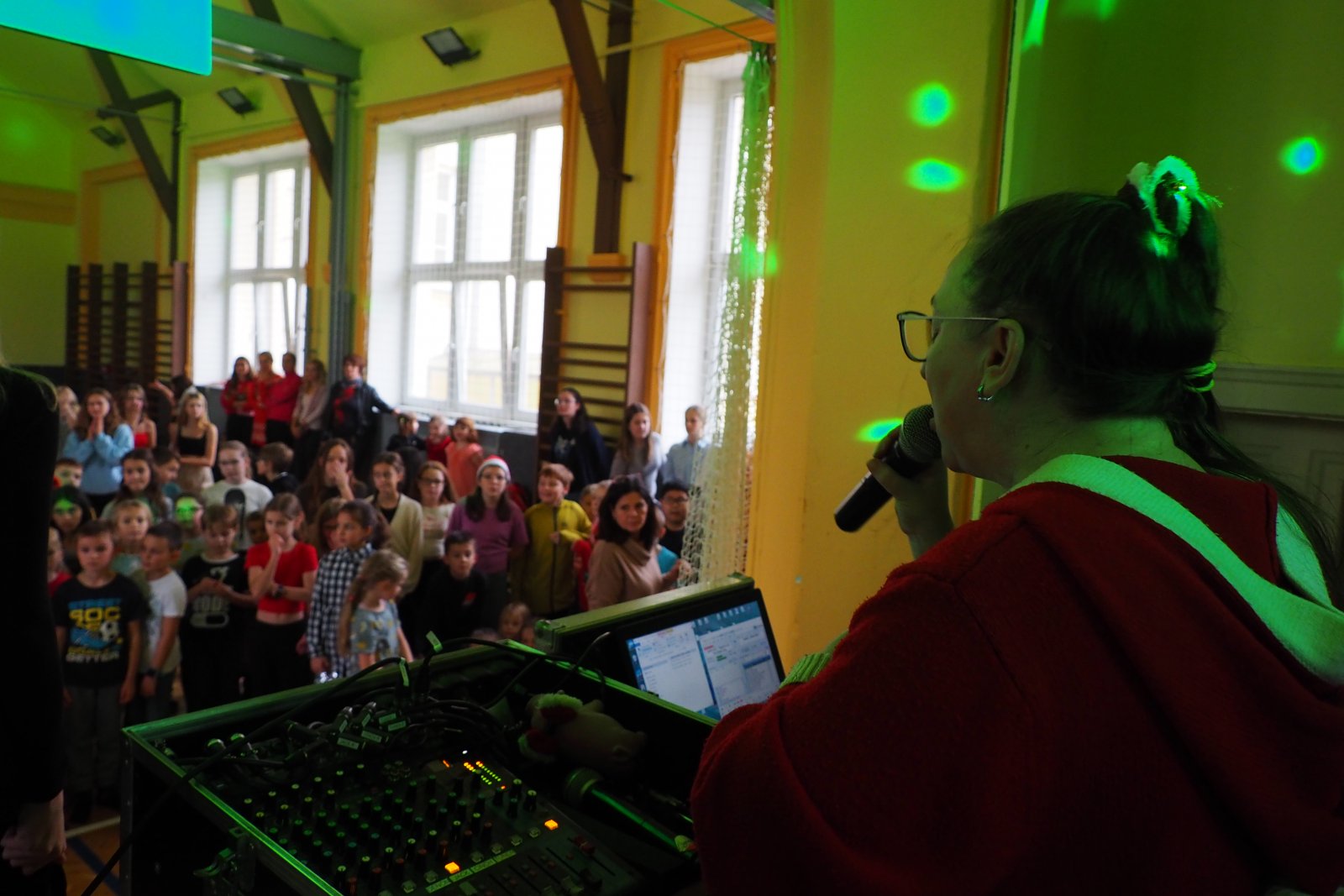Ve čtvrtek 21. prosince se naše škola roztančila. Přivítali jsme zde totiž DJ Martinu Kvítko Procházkovou z Rádia Haná, která se tradičně zhostila naší vánoční diskotéky. Zazněly na ní aktuální hity, ale i ty starší, osvědčené. Mnozí také využili příležitosti a nechali si zahrát svou oblíbenou písničku na přání. Diskotéku si užily děti všech ročníků a bylo vidět, že hudba dokáže krásně propojit velké, malé, ale i ty nejmenší tanečníky.