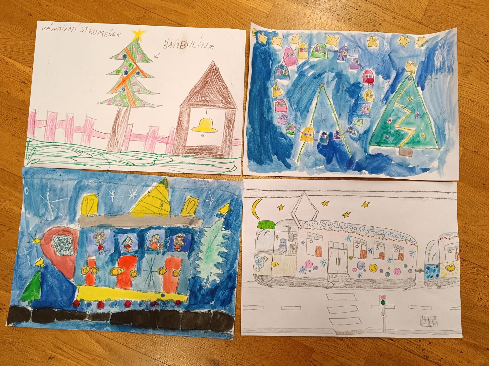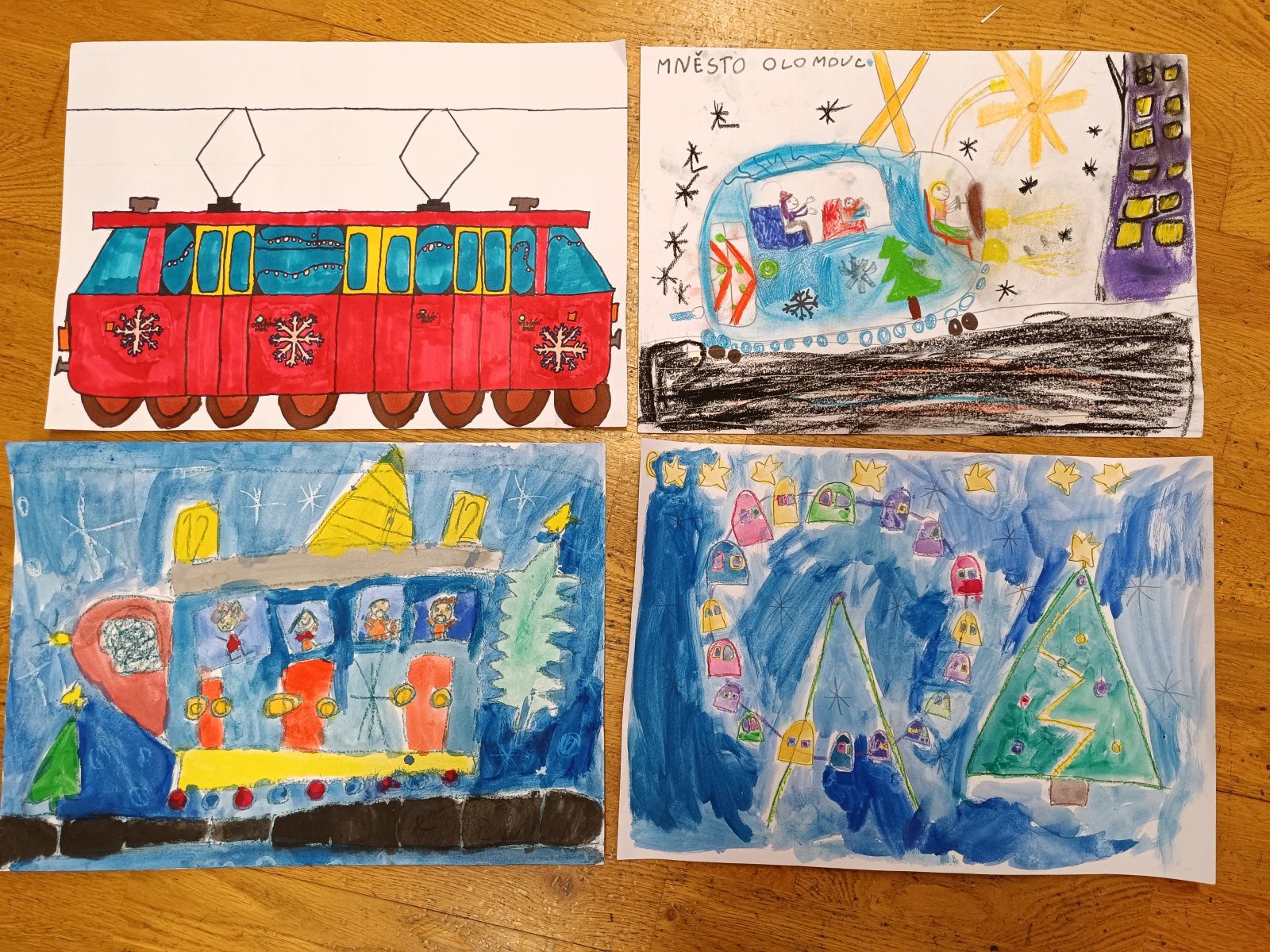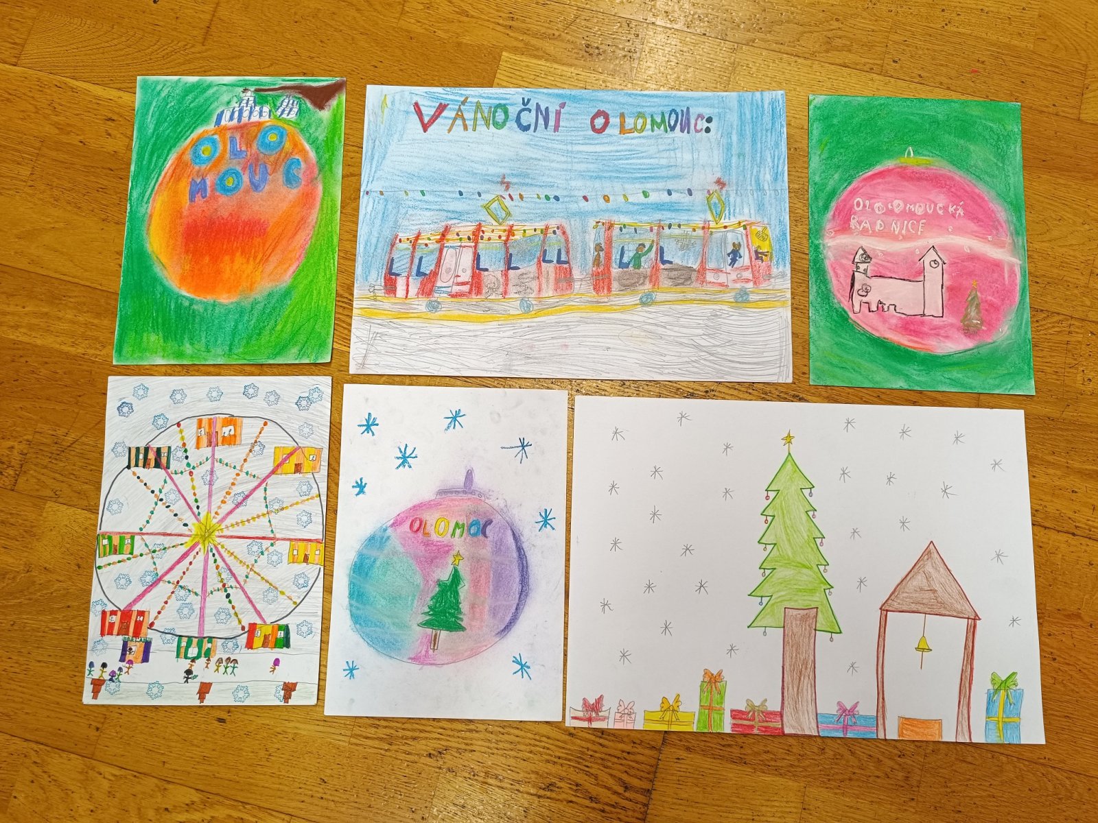 Děti malovaly nejen vánočně vyzdobenou tramvaj, olomoucké památky a vyhlídkové kolo, ale i adventní trhy na náměstí s nazdobeným stromečkem, které mají neopakovatelnou atmosféru a patří nejkrásnějším v Evropě.