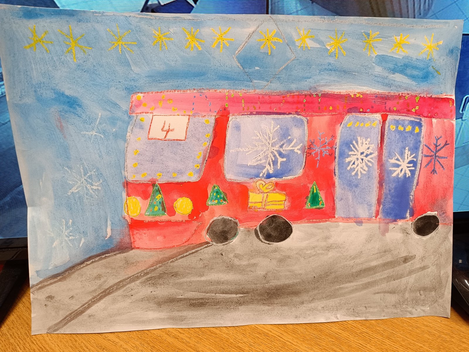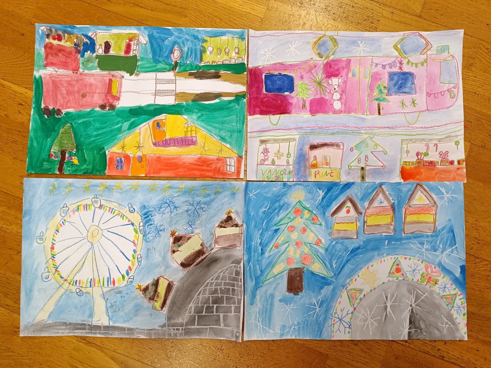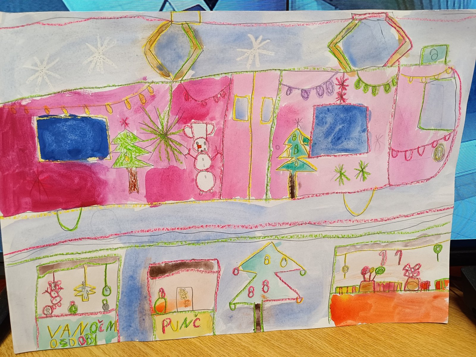 Děti malovaly nejen vánočně vyzdobenou tramvaj, olomoucké památky a vyhlídkové kolo, ale i adventní trhy na náměstí s nazdobeným stromečkem, které mají neopakovatelnou atmosféru a patří nejkrásnějším v Evropě.