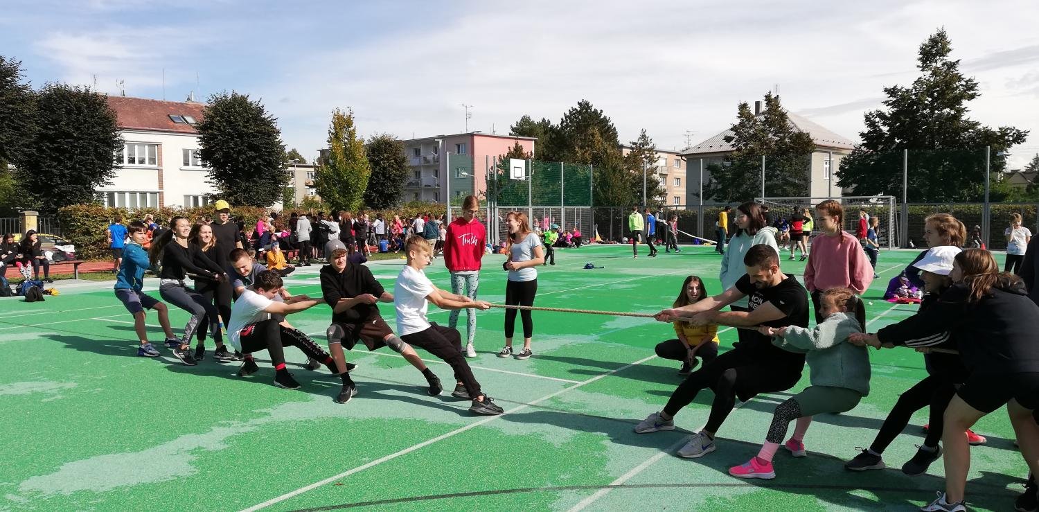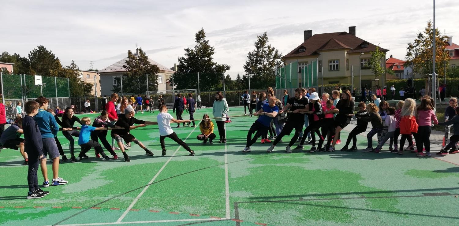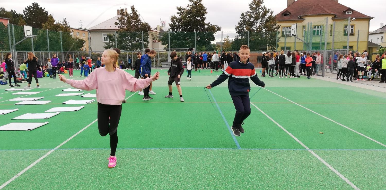 Dne 30. září 2021 se na naší škole konal již dlouho slibovaný a připravovaný Sportovní den. Děti absolvovaly čtyři disciplíny z Odznaku všestrannosti olympijských vítězů (OVOV): Trojskok z místa, přeskok přes švihadlo, hod medicinbalem a sed-lehy. Po absolvování víceboje si děti také mohly vyzkoušet: střelbu na basketbalový koš, pétanque, kuličky, střelbu na florbalovou branku, kondiční cvičení, strečink, tabatu a zahrály si vybíjenou. Zároveň probíhal závod vítězů jednotlivých tříd v běhu na 50 metrů a skoku dalekém. Finále Sportovního dne vyvrcholilo utkáním v kopané, kdy naši žáci hráli proti sportovním osobnostem (David Rozehnal, Martin Blaha) a učitelům.