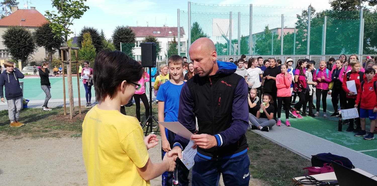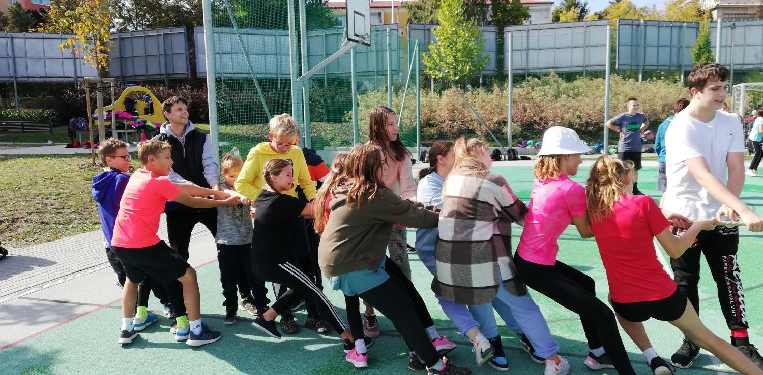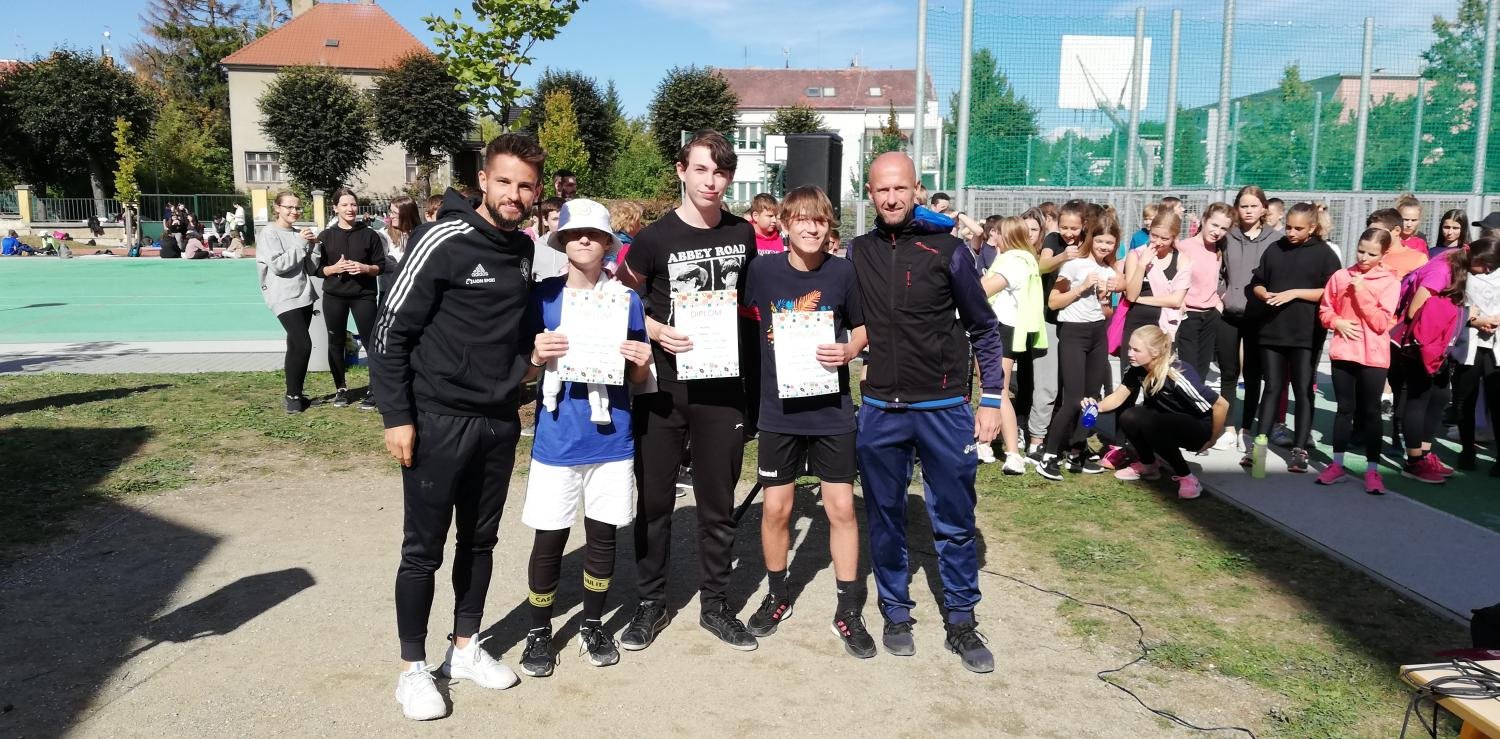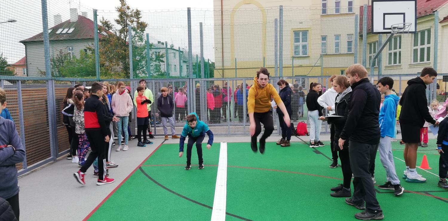 Dne 30. září 2021 se na naší škole konal již dlouho slibovaný a připravovaný Sportovní den. Děti absolvovaly čtyři disciplíny z Odznaku všestrannosti olympijských vítězů (OVOV): Trojskok z místa, přeskok přes švihadlo, hod medicinbalem a sed-lehy. Po absolvování víceboje si děti také mohly vyzkoušet: střelbu na basketbalový koš, pétanque, kuličky, střelbu na florbalovou branku, kondiční cvičení, strečink, tabatu a zahrály si vybíjenou. Zároveň probíhal závod vítězů jednotlivých tříd v běhu na 50 metrů a skoku dalekém. Finále Sportovního dne vyvrcholilo utkáním v kopané, kdy naši žáci hráli proti sportovním osobnostem (David Rozehnal, Martin Blaha) a učitelům.