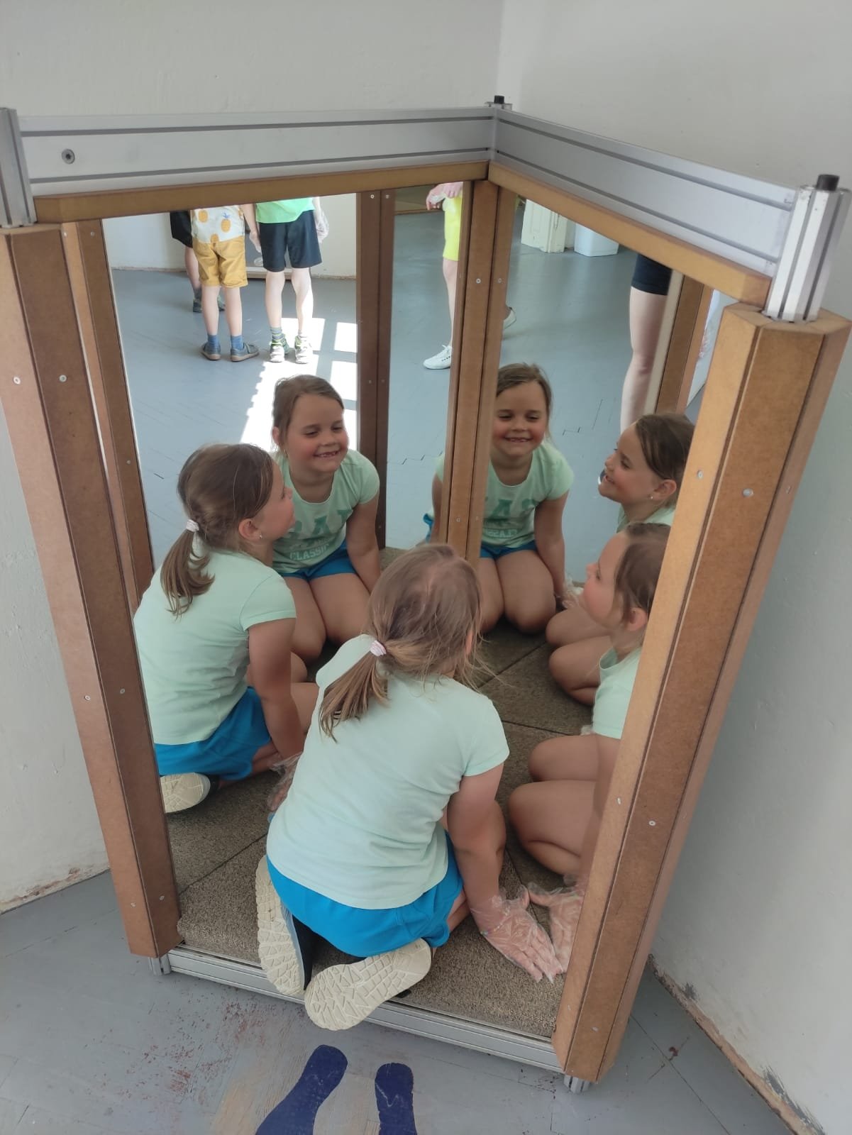 Jsou místa, kde hluk a křik nikoho neruší, ba právě naopak, je žádaný. Zdi zrcadlového labyrintu na kroměřížském náměstí se po naší návštěvě ještě dlouho otřásaly smíchem. Jestli se naše karikatury v zrcadlech povedly, můžete posoudit sami podle fotografií. Cesta bludištěm byla trochu dobrodružná, ale naštěstí jsme se z něj vymotali všichni. Z bludiště vedla naše cesta rovnou ke zmrzlinářům. Ledová pochoutka byla báječná a velikost kopečků nepředstavitelná.