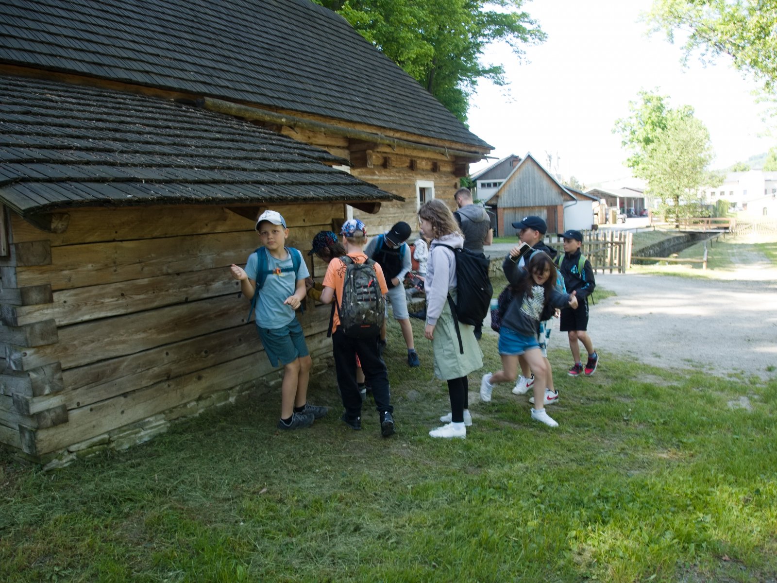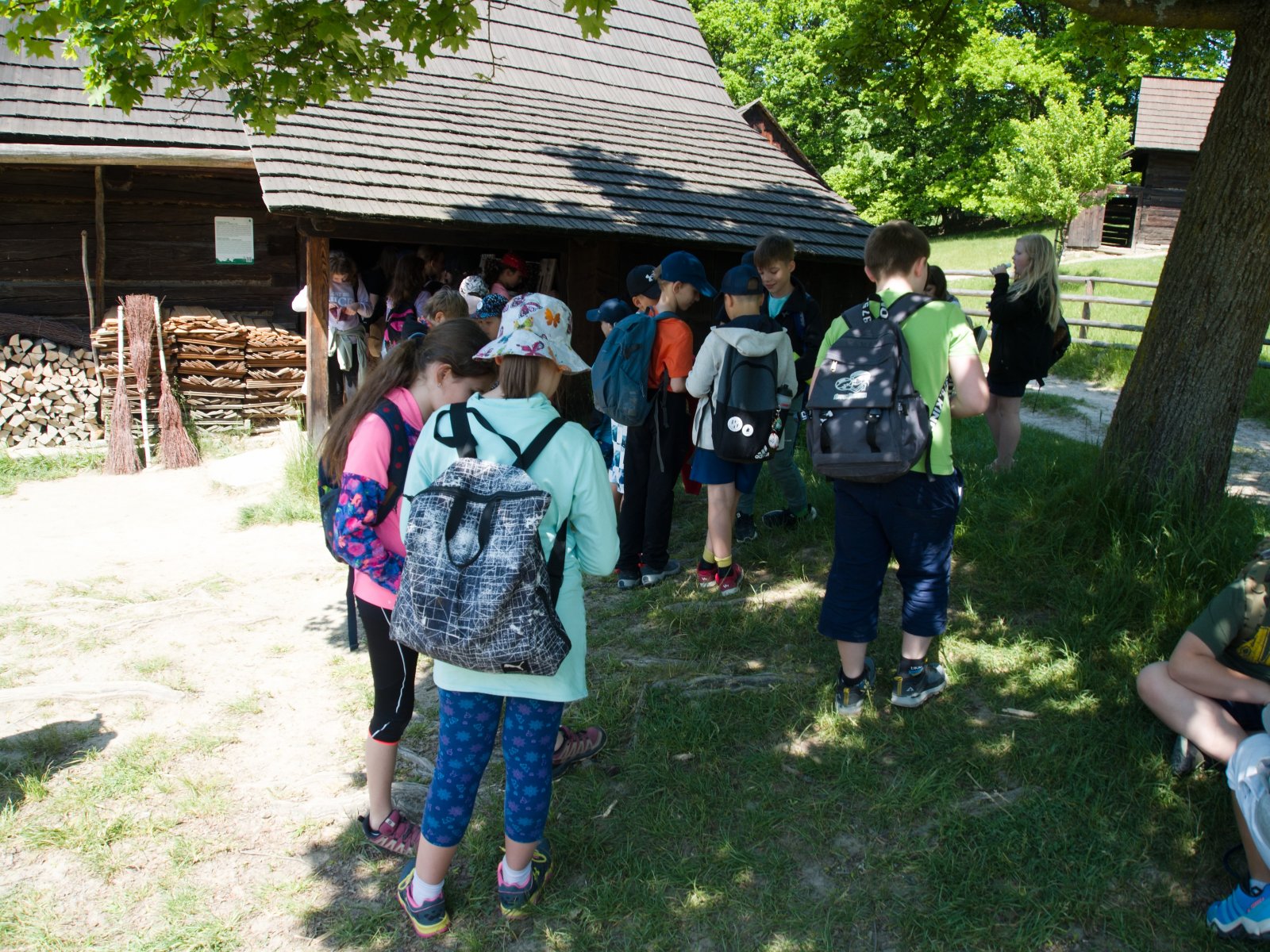 Naši čtvrťáci poslední květnový den zavítali do Valašského muzea v přírodě v Rožnově pod Radhoštěm. Naší první prohlídkou byla Valašská dědina. Jako mávnutí kouzelného proutku jsme se ocitli v 18. století. Mohli jsme tak obdivovat každodenní způsob života zdejších lidí. Každá chalupa nebo malá chaloupka nás překvapila množstvím zajímavých předmětů. Podařilo se nám navštívit i hostinec.