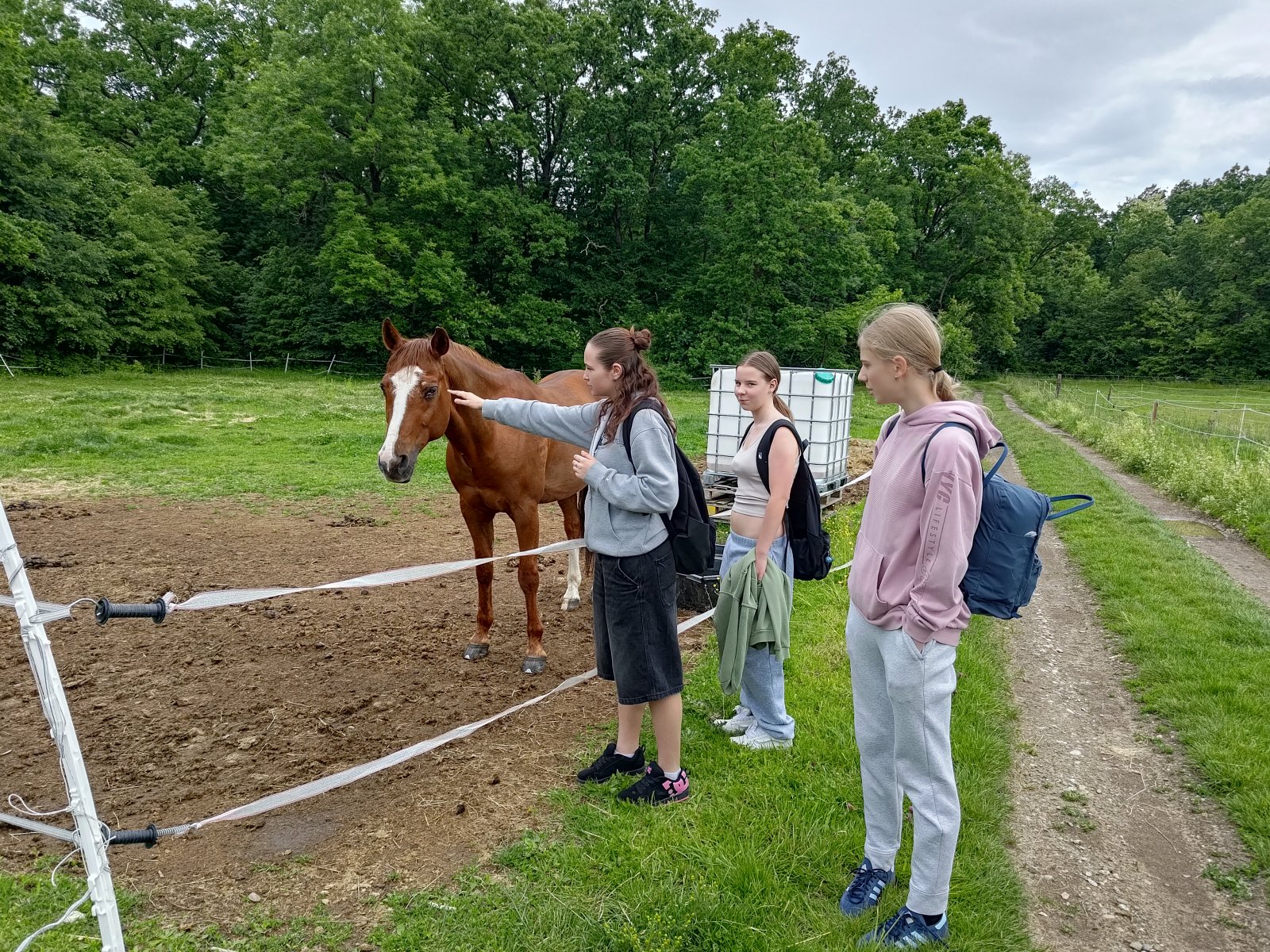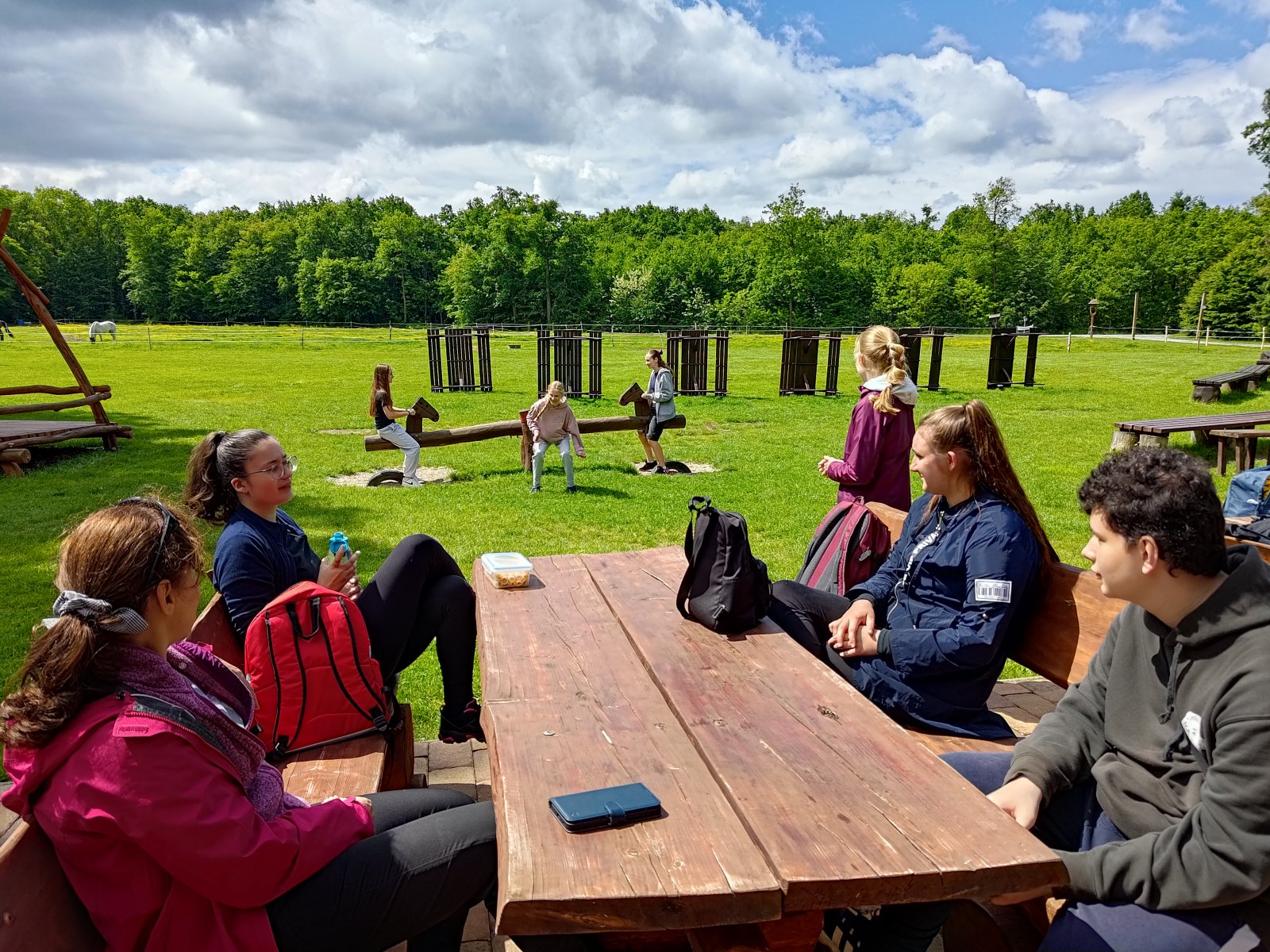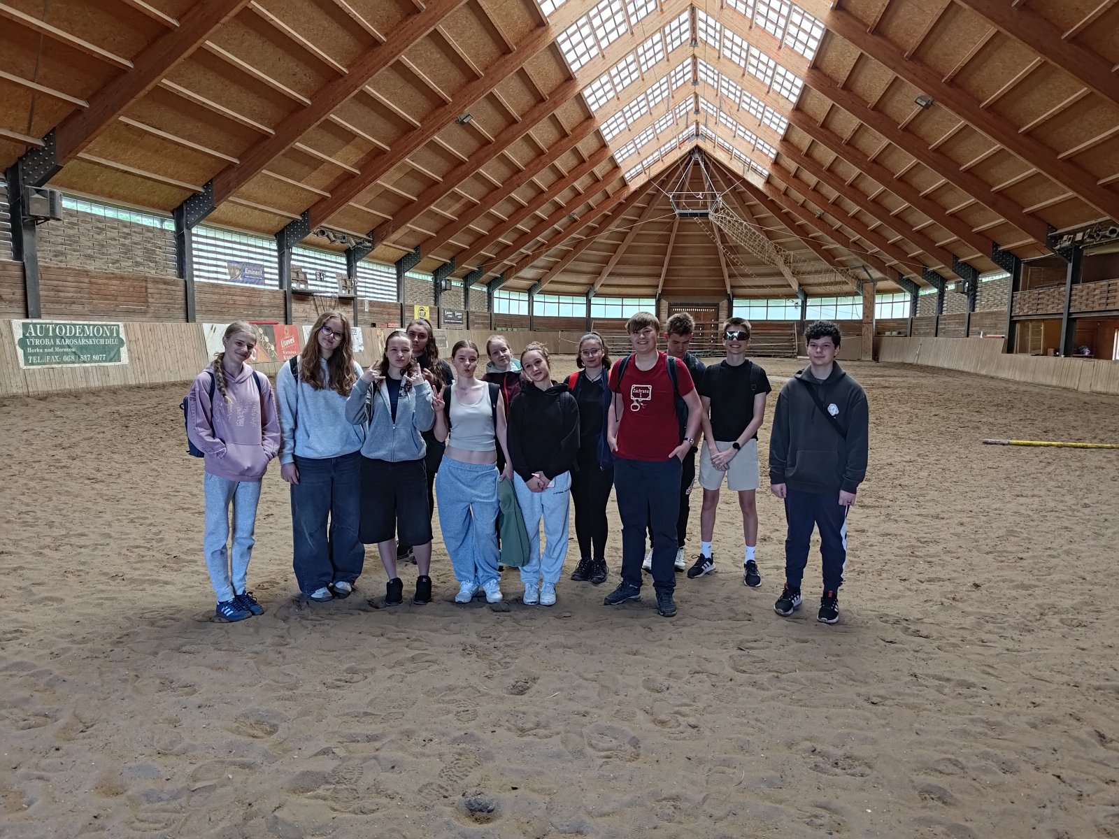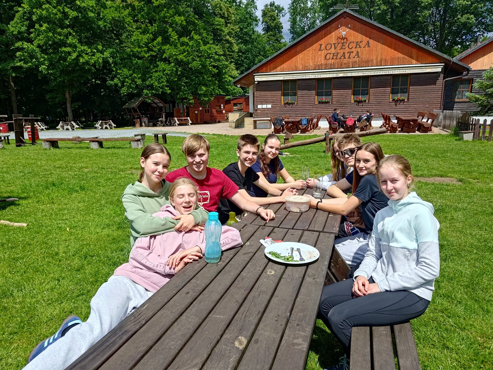 První výlet proběhl ve čtvrtek 29. května, kdy jsme se vydali na Loveckou chatu v Horce nad Moravou. Počasí nám přálo, a tak jsme si naplno užili krásy Litovelského Pomoraví. Prošli jsme se přírodou a díky naší spolužačce Aničce jsme navštívili i nedaleký jezdecký areál, kde jsme si prohlédli výběhy a koně.