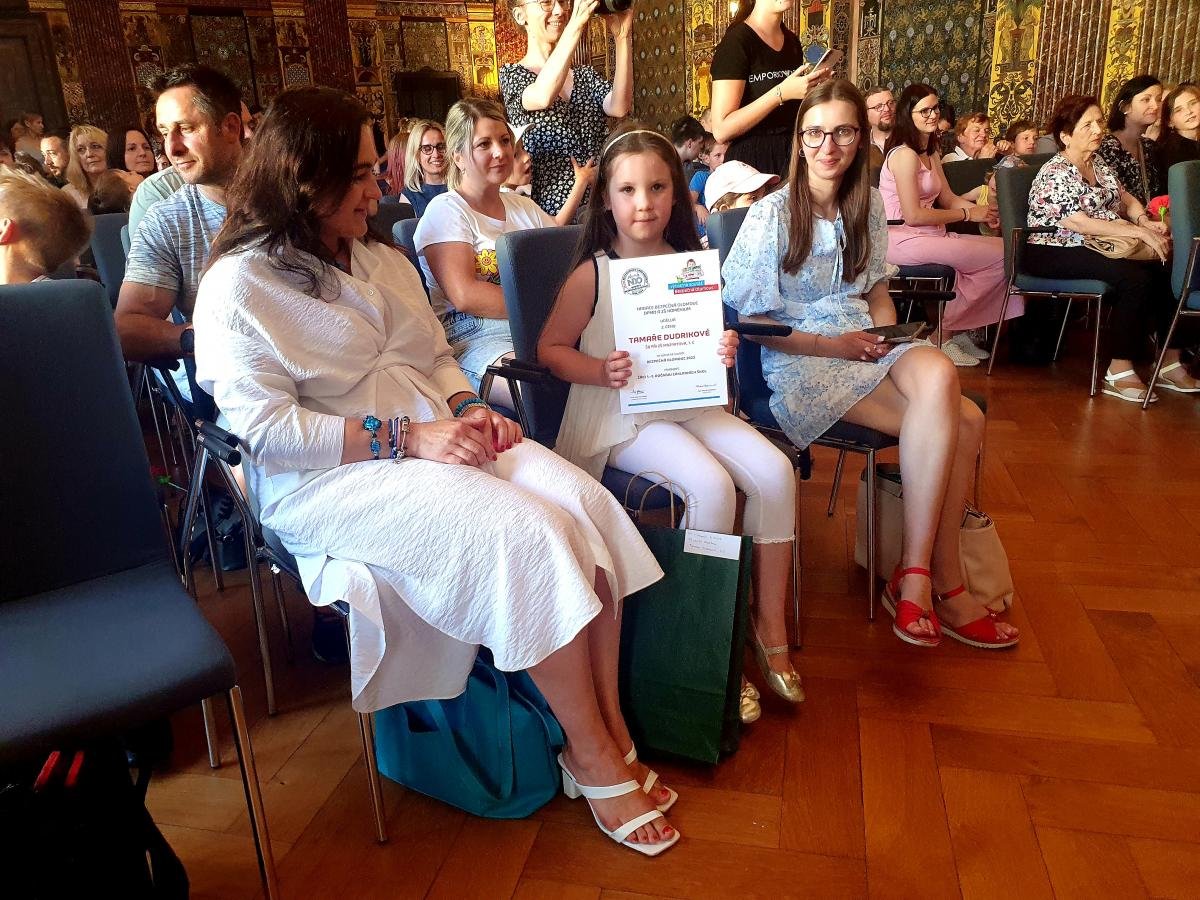 Slavnostní ocenění vybraných prací se konalo již tradičně v krásném reprezentativním sále FZŠ Koménium. Z naší školy byla oceněna Tamara Dudriková.