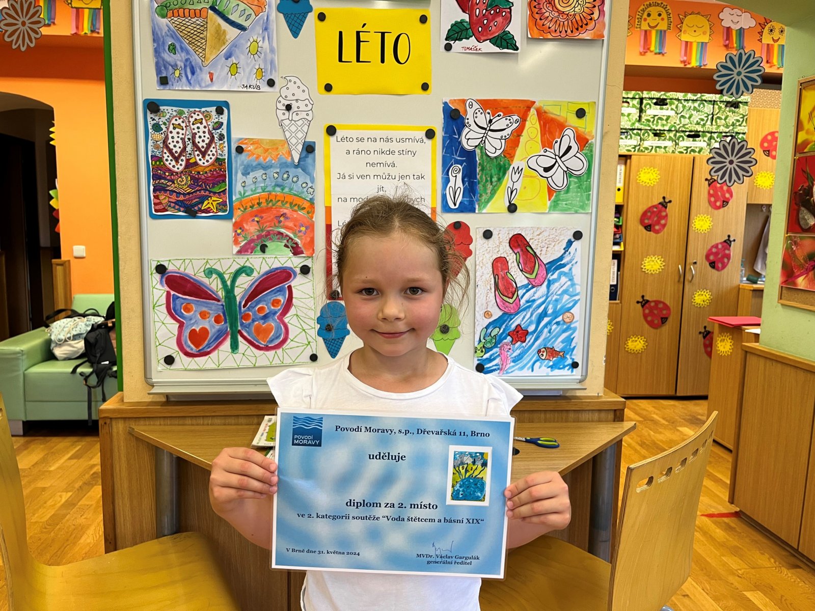 Děti ze školní družiny se v březnu zapojily do 19. ročníku výtvarné a literární soutěže „Voda štětcem a básní“, kterou vyhlašuje Povodí Moravy, s. p. Letošní téma „Odkud voda pramení“ oslovilo mnoho mladých výtvarníků a spisovatelů. Porota vybírala z 937 děl, z nichž převažovala výtvarná díla. Obrázků bylo 772, prostorové tvorby 59 a keramiky 18 kousků. Do literární části soutěže bylo přihlášeno celkem 88 děl, převažovala poezie.