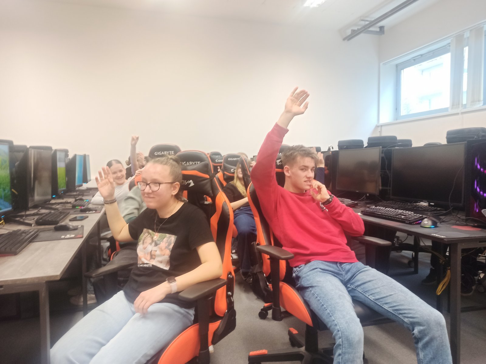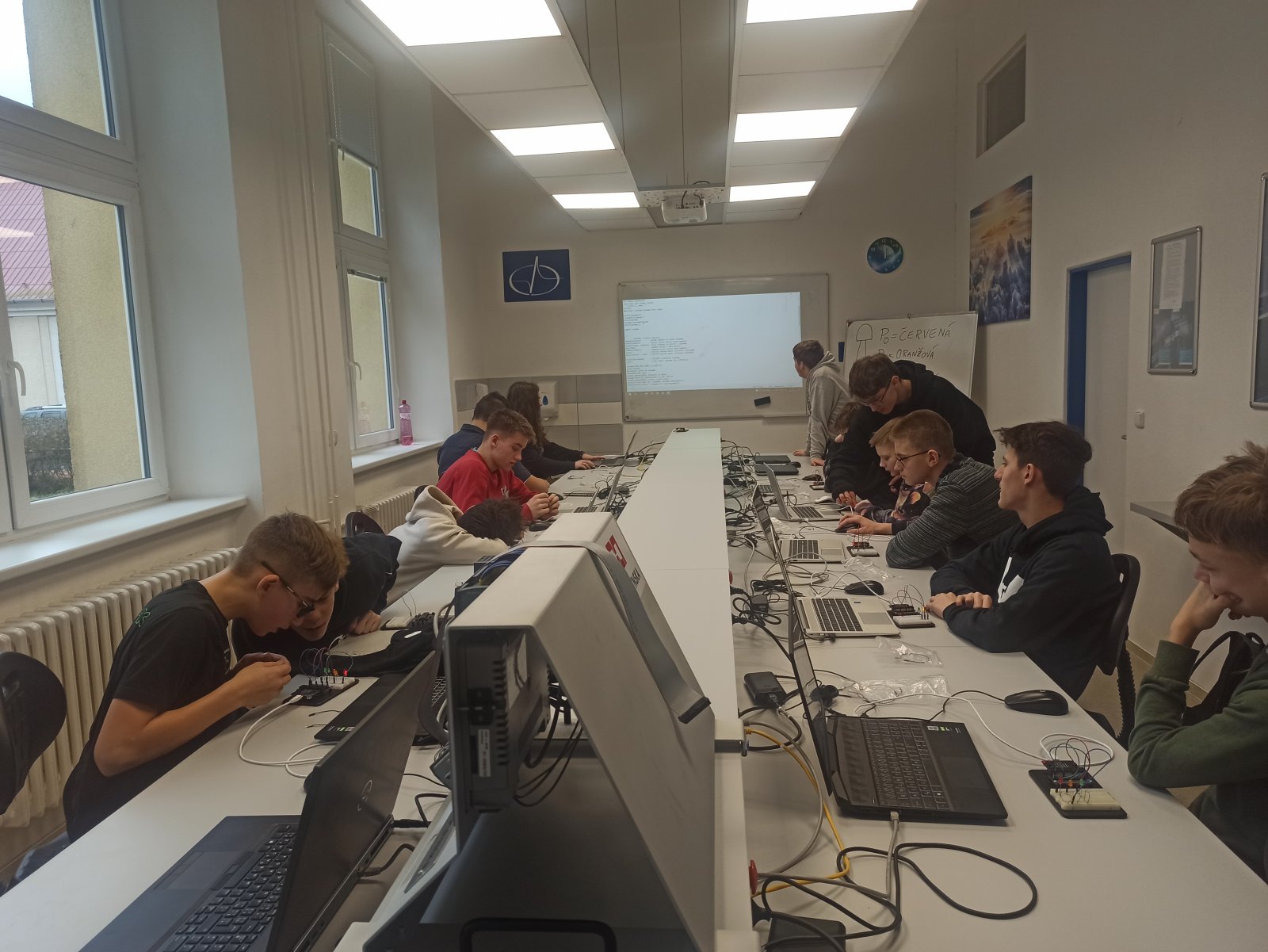 A že se jednalo se skutečně o pestrý a zajímavý program! Žáci byli rozděleni do dvou skupin a celkem během dopoledne absolvovali čtyři stanoviště. Na prvním stanovišti si vyslechli zajímavosti o 3D tisku, mohli si prohlédnout konkrétní ukázky 3D tiskáren a dozvěděli se, co vše lze na 3D tiskárnách zhotovit. Jednotlivé workshopy vedli přímo studenti této školy a bylo vidět, že je studium opravdu baví a že již nyní jsou ve svém oboru téměř profesionály. V dalších prakticky zaměřených workshopech si mohli naši osmáci zkusit také základy programování, přičemž jeden z úkolů bylo „rozsvítit“ semafor z LED diod. V závěru celého programu byla pro žáky připravena přednáška s názvem „Zdravé hraní počítačových her“, v rámci níž bylo poukázáno na nebezpečí a dopady přílišného hraní her s důrazem na akceptování zásad správného sezení u počítače, důležitost trávení přiměřeného času za monitory počítačů i vliv počítačových her na reálný život a ještě mnoho dalšího.