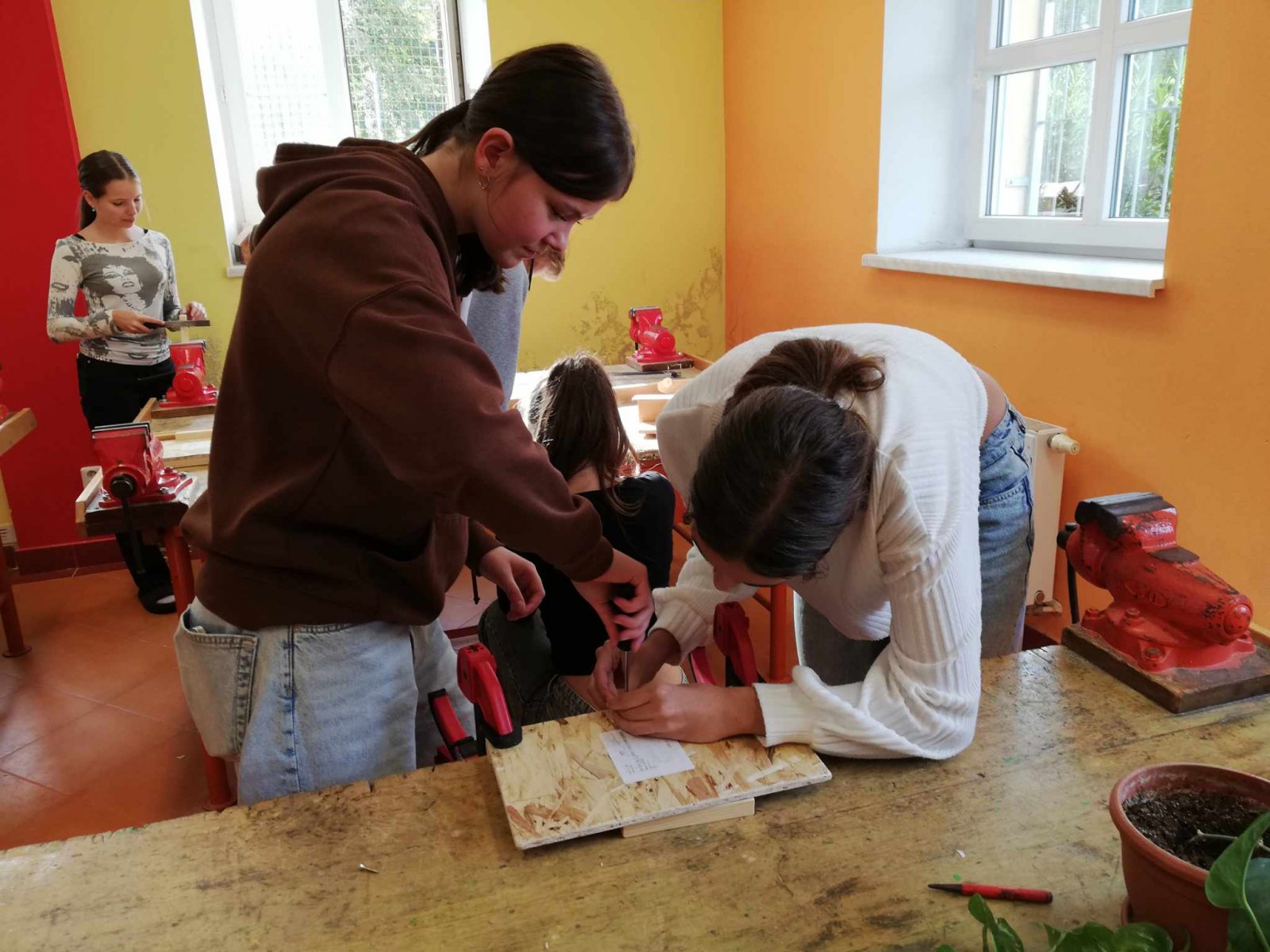 Smrkové hranolky, OSB desky, vruty, vypalovačky do dřeva, řezbářské nože a rydla, brusný kámen a protipořezové rukavice – to vše už máme nakoupené a začínáme tunit naši školu. Koncem minulého školního roku jsme totiž vybojovali krásné druhé místo v soutěži Vytuň si školu, kterou pořádá Magistrát města Olomouce.