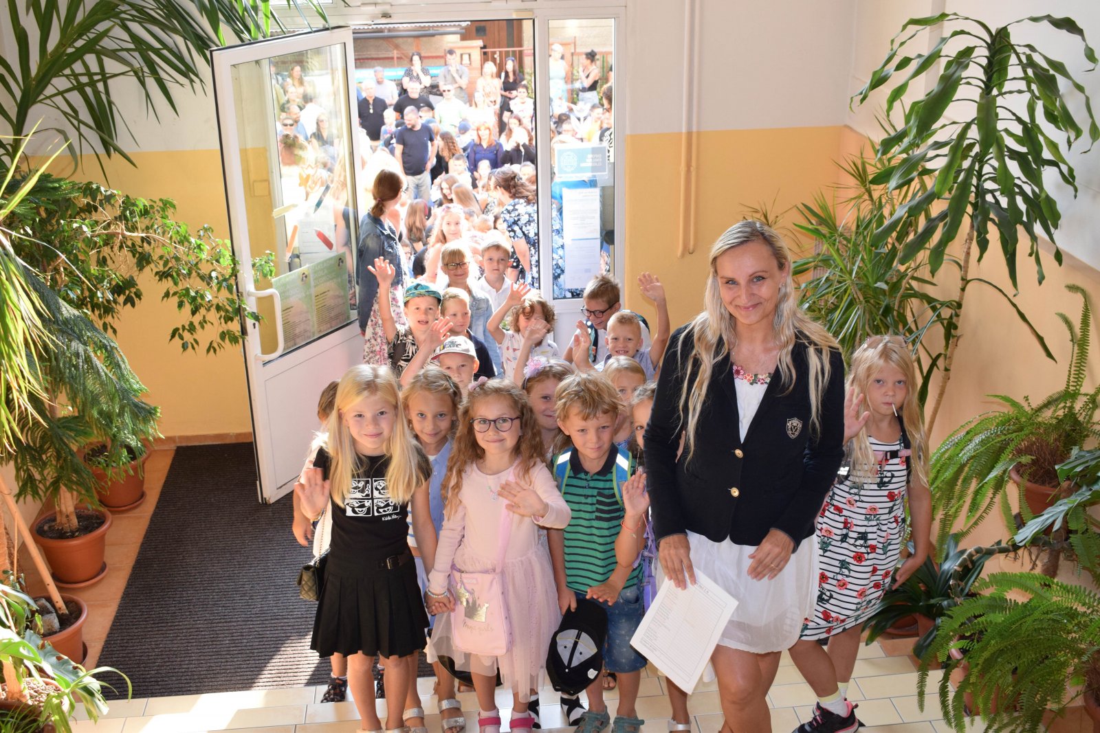 2. září 2024 již tradičně před budovou naší školy. Všichni žáci byli natěšení před školou, ovšem největší nadšení bylo patrné v očích našich prvňáčků, které do školy doprovázeli rodiče i prarodiče. Po slavnostním proslovu naší paní ředitelky a za hudebního doprovodu moderátorky Rádia Haná – Martiny Kvítko Procházkové se všichni naši žáci spolu s třídními učiteli odebrali do svých tříd. Všem dětem i pedagogům přejeme úspěšný start do nového školního roku.