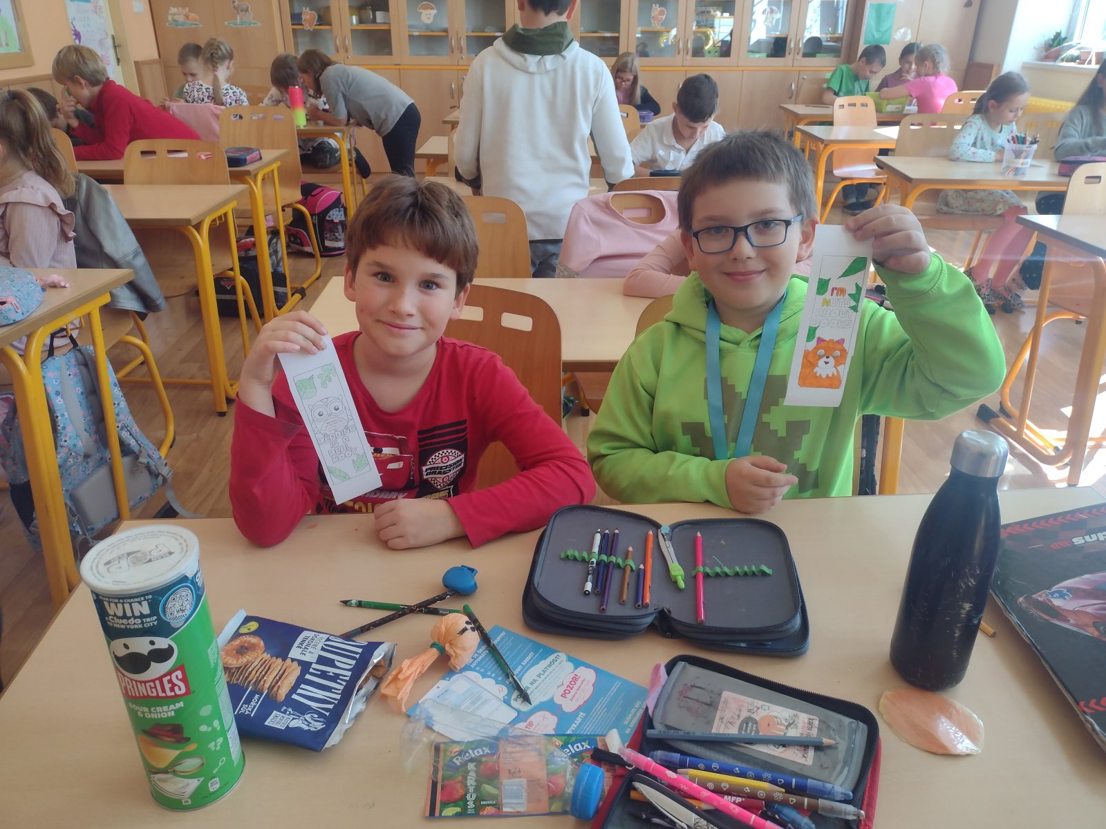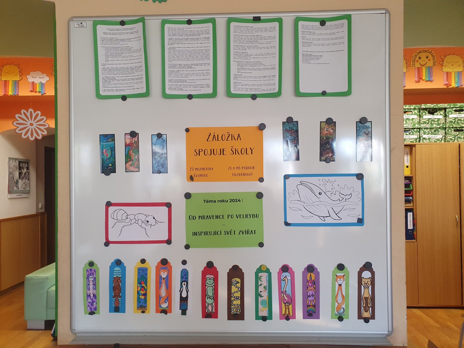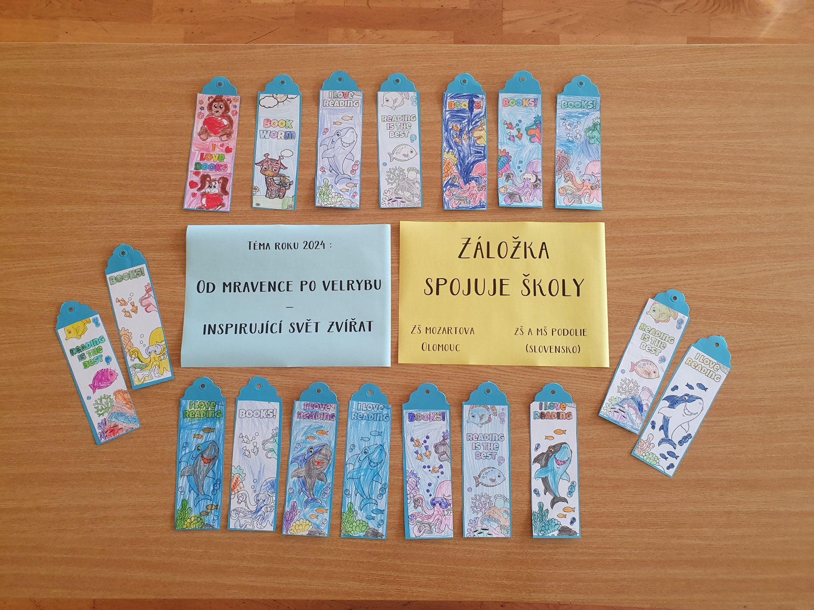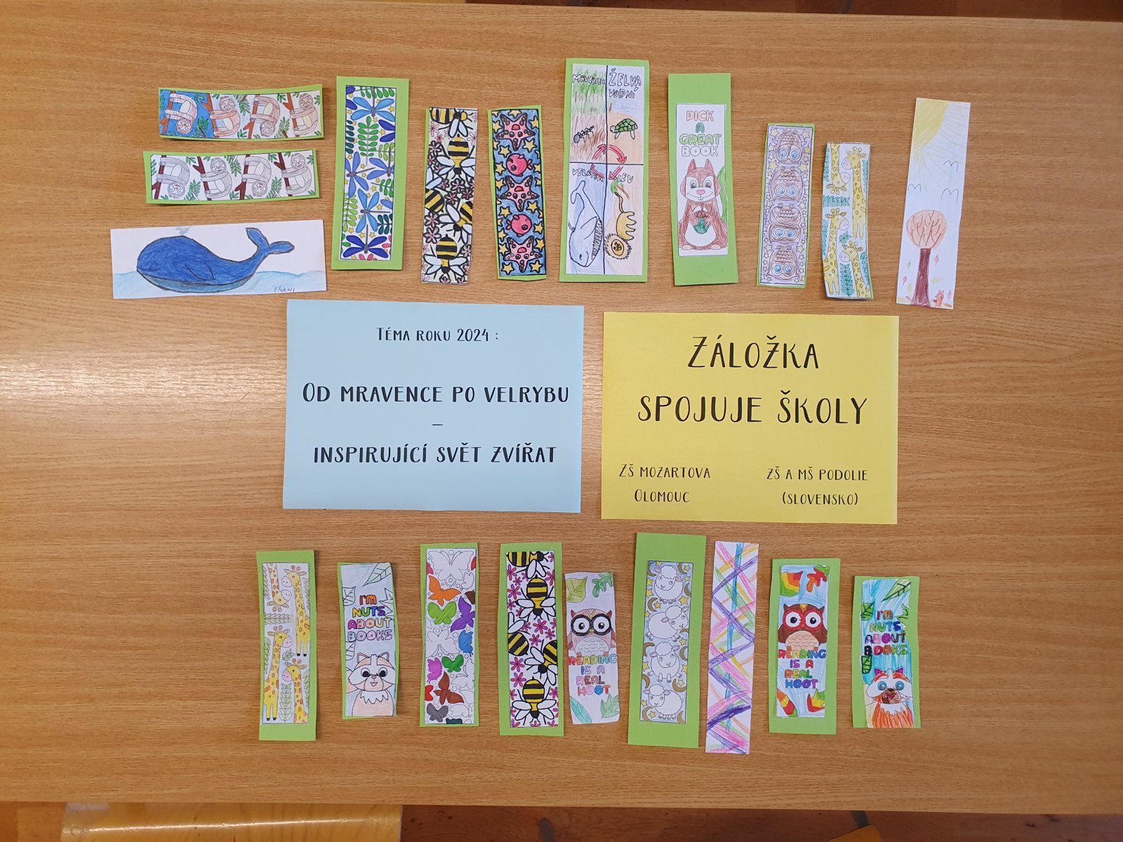 Děti ze školní družiny se letos opět zapojily do česko- slovenského projektu Záložka do knihy spojuje školy. Téma již 15. ročníku Inspirující svět zvířat – od mravence po žraloka děti velmi nadchlo a hned se pustily do práce. Během tvoření více než stovky nápaditých záložek jsme se zaposlouchali do slovenských pohádek, pracovali s mapou a cestovali po Slovensku, abychom přesně zjistili, kde leží naše partnerská MŠ a ZŠ Podolie. Zábavné bylo i pexeso, kdy jsme se seznámili s některými slovenskými slovíčky. Vieme, čo je lopta, ihrisko, žihlava a čučoriedka, kto je bocian i šarkan a nikto nebol smedny ako ťava. Užili jsme si spoustu legrace a pak jen čekali na balíček od našich slovenských kamarádů. Záložky nám udělaly velkou radost a věříme, že spokojeni byly i v Podolie. Už teď jsme zvědaví, jaké téma nás čeká příští rok, protože záložek není nikdy dost.
