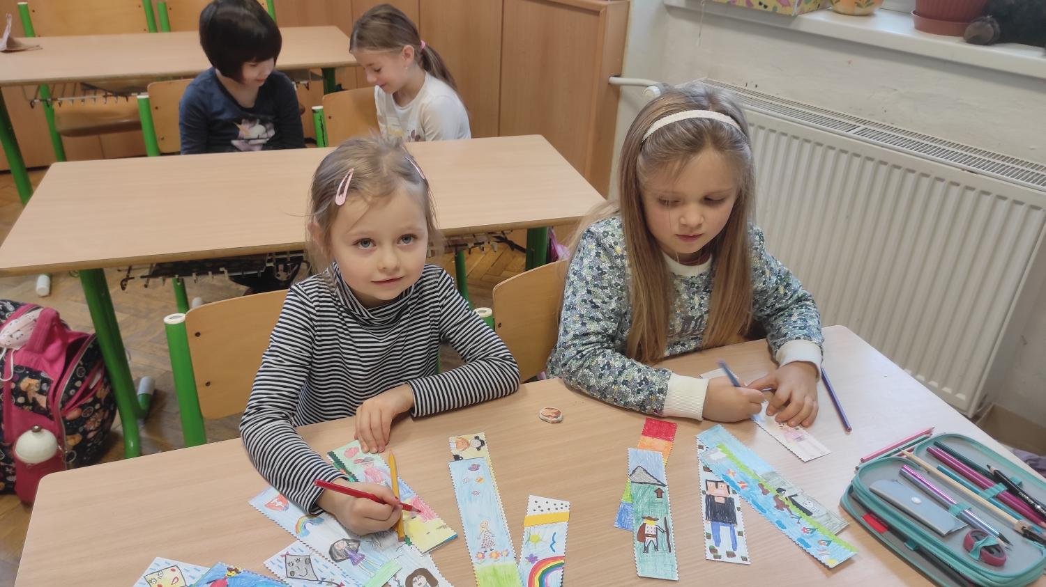 Naše děti už vědí z předcházejících ročníků, že mají za úkol vyrobit záložku do knihy pro kamaráda z partnerské školy na Slovensku.