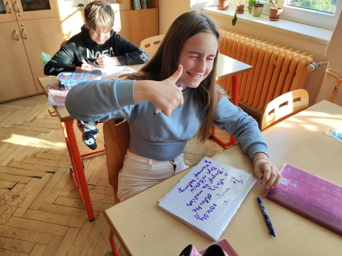 Naši žáci druhého stupně se již třetím týdnem setkávají se studentkou učitelství českého jazyka a dějepisu Andreou Bajnarovou. Naši školu si pro svou souvislou pedagogickou praxi nevybrala náhodou, sama se totiž odborně věnuje rozvoji čtenářských dovedností a my jsme ji moc rádi vyšli vstříc v tom, aby si získanou teorii vyzkoušela v praxi. Máme velkou radost, že směr, kterým se ubíráme již řadu let, proniká i na pedagogické fakulty. Děti jsou z jejích hodin nadšené, a to samé platí i pro učitelé zaštiťující průběh praxe. Andreo, děkujeme!