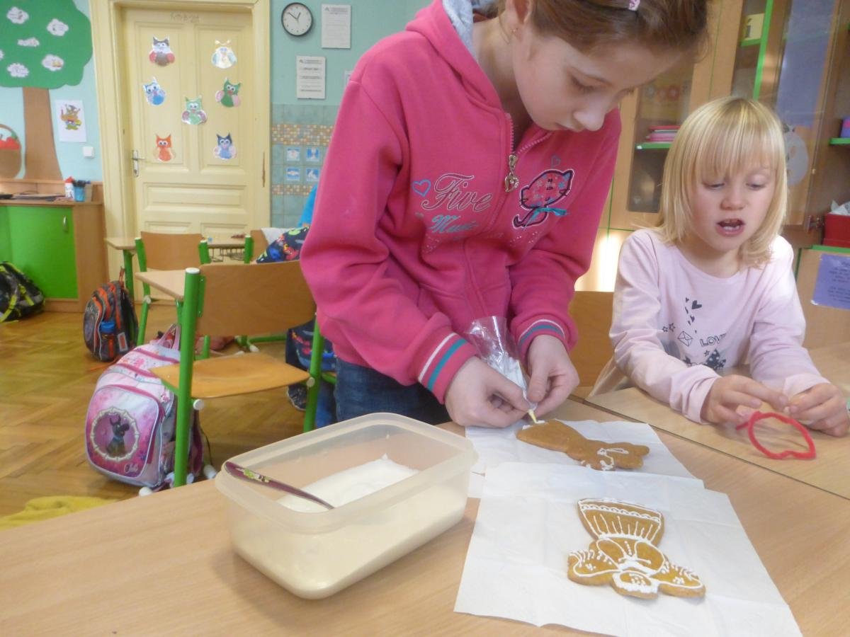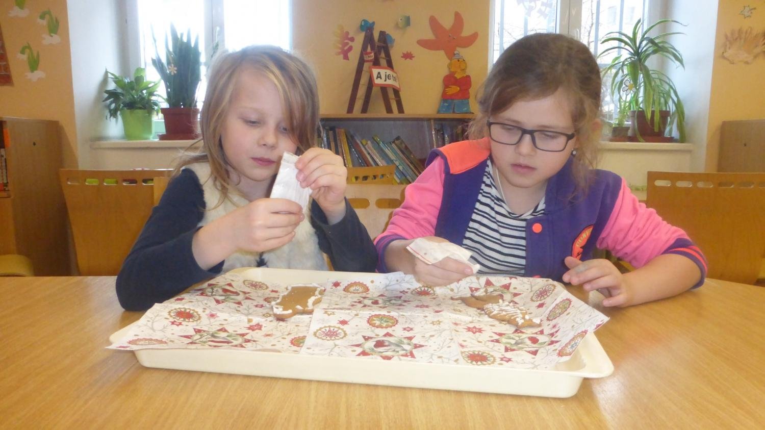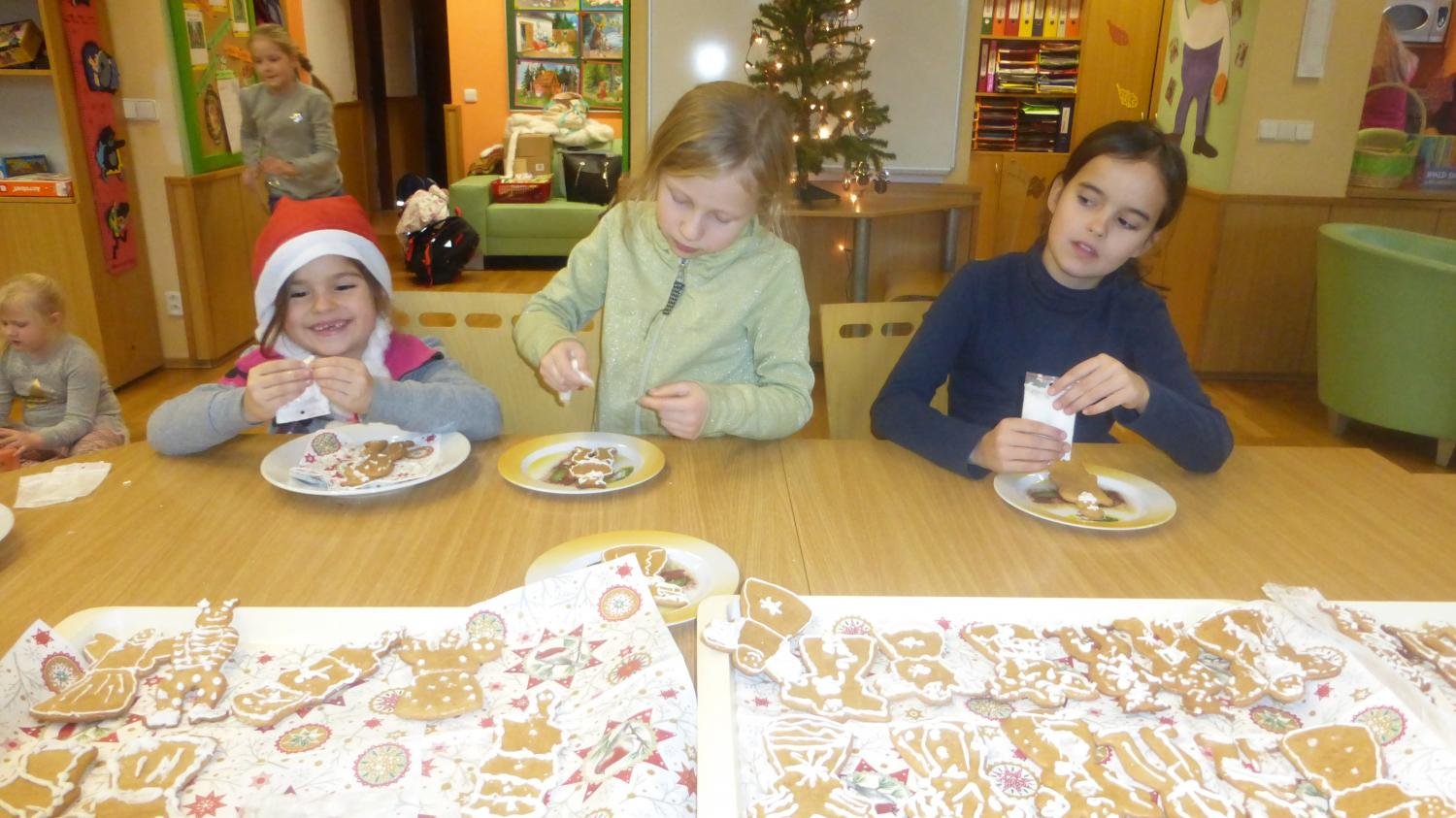 Děti ve školní družině v prvním adventním týdnu nazdobily perníčky pro neziskovou organizaci. Perníčky budou dělat radost především v nemocnici, kde budou na Mikuláše rozdány nemocným lidem. Zdobili jsme postavy Mikuláše, čerta a anděla. Někdo zvládl nazdobit i více perníčků, jiný třeba jen jeden. Společně jsme zvládli kus práce, která pak vykouzlí úsměv lidem, kteří nemohou být na Mikuláše doma. Jak se dětem zdobení perníčků dařilo se můžete kouknout v naší galerii fotek.