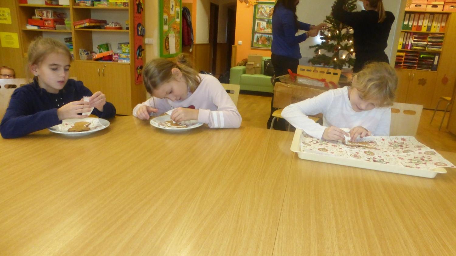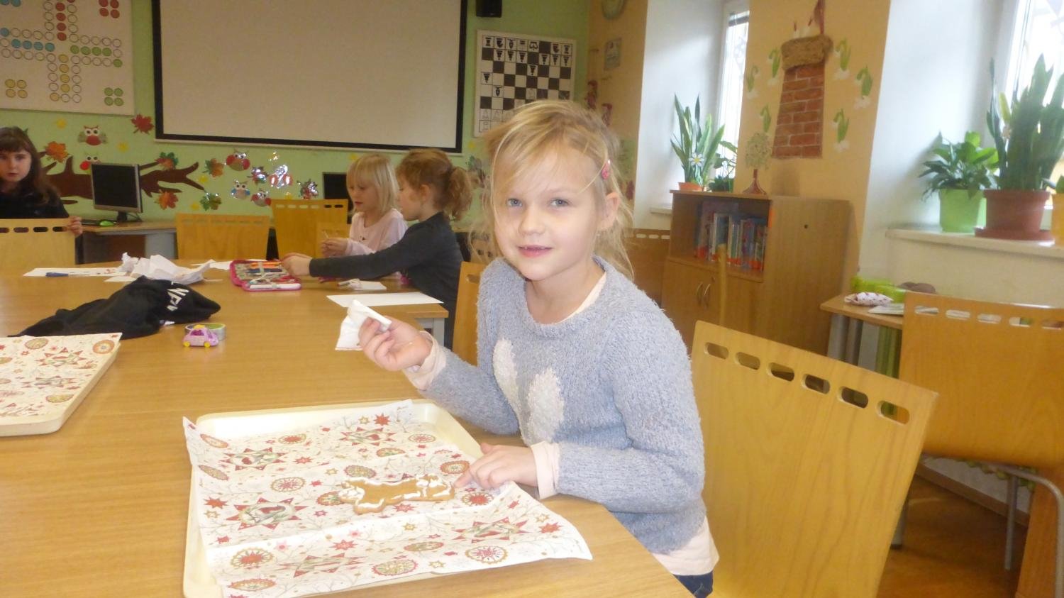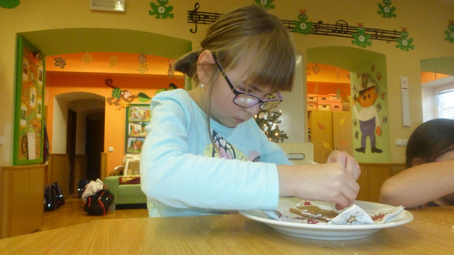 Děti ve školní družině v prvním adventním týdnu nazdobily perníčky pro neziskovou organizaci. Perníčky budou dělat radost především v nemocnici, kde budou na Mikuláše rozdány nemocným lidem. Zdobili jsme postavy Mikuláše, čerta a anděla. Někdo zvládl nazdobit i více perníčků, jiný třeba jen jeden. Společně jsme zvládli kus práce, která pak vykouzlí úsměv lidem, kteří nemohou být na Mikuláše doma. Jak se dětem zdobení perníčků dařilo se můžete kouknout v naší galerii fotek.