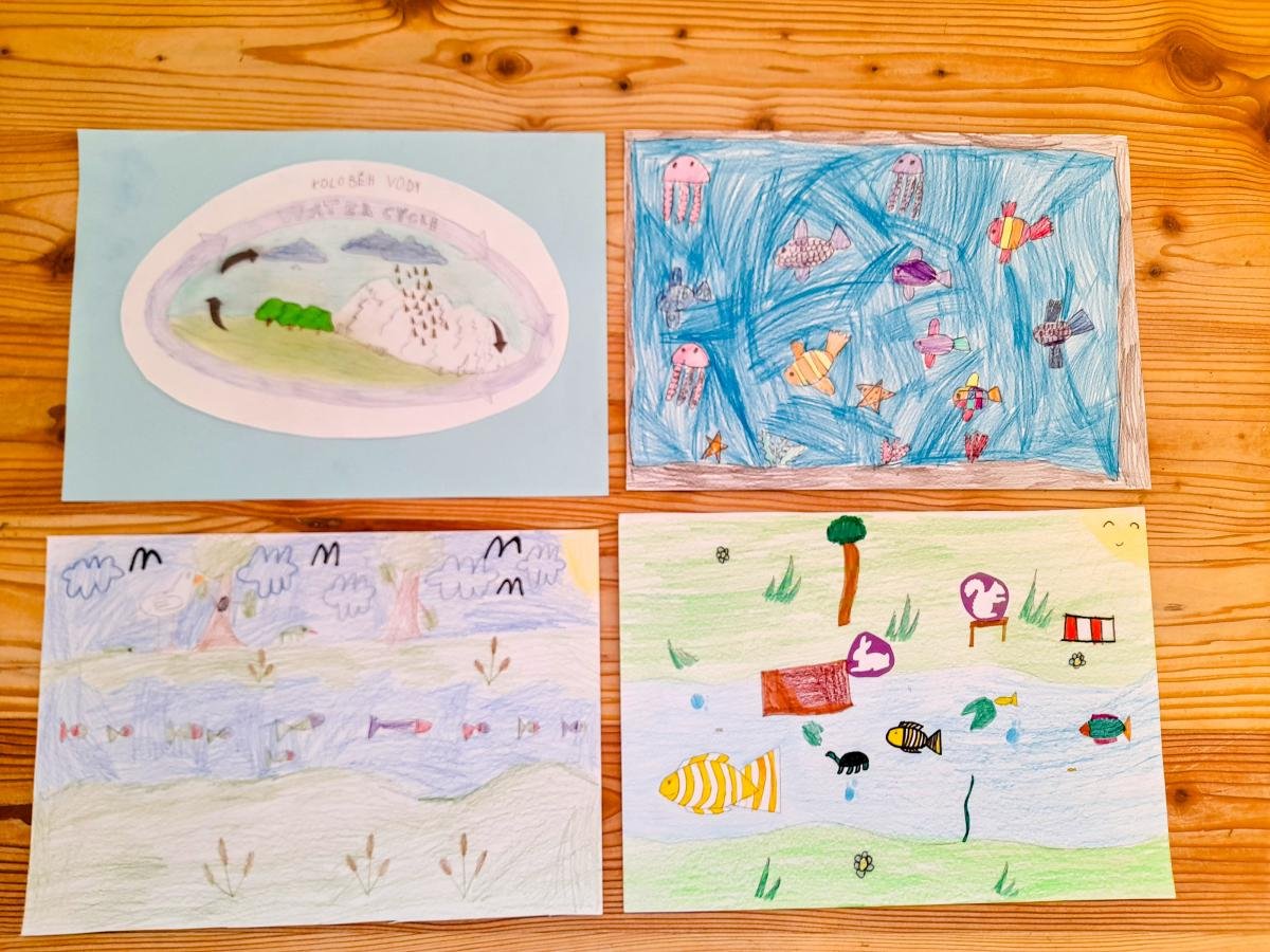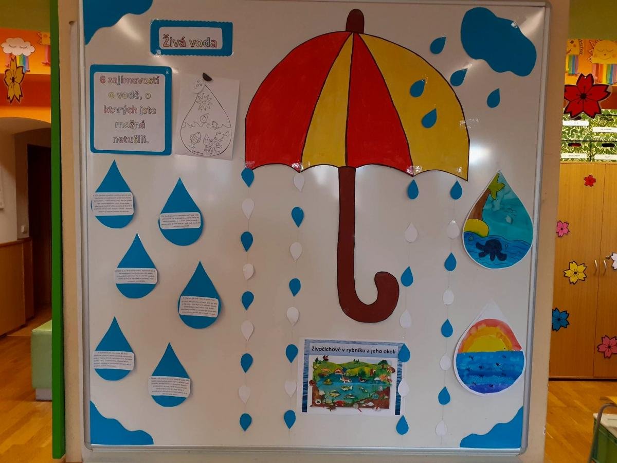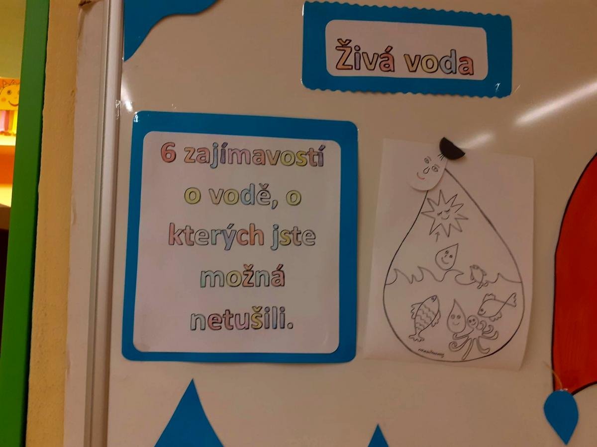 Tématu voda jsme se věnovali v průběhu celého týdne i v jednotlivých odděleních. Povídali jsme si o významu vody pro život, zpívali písně o vodě, rytmizovali, zkoušeli zábavné kvízy a četli si pohádky a příběhy.