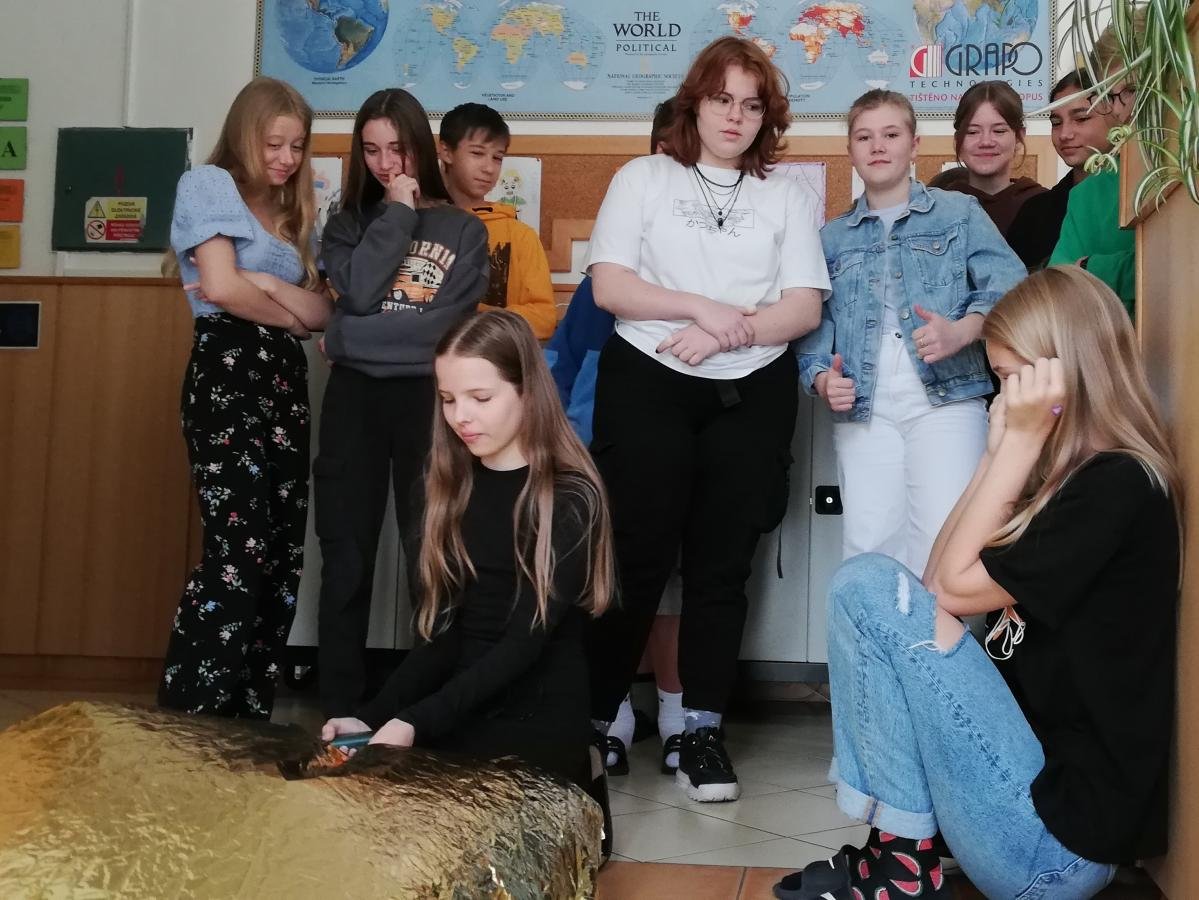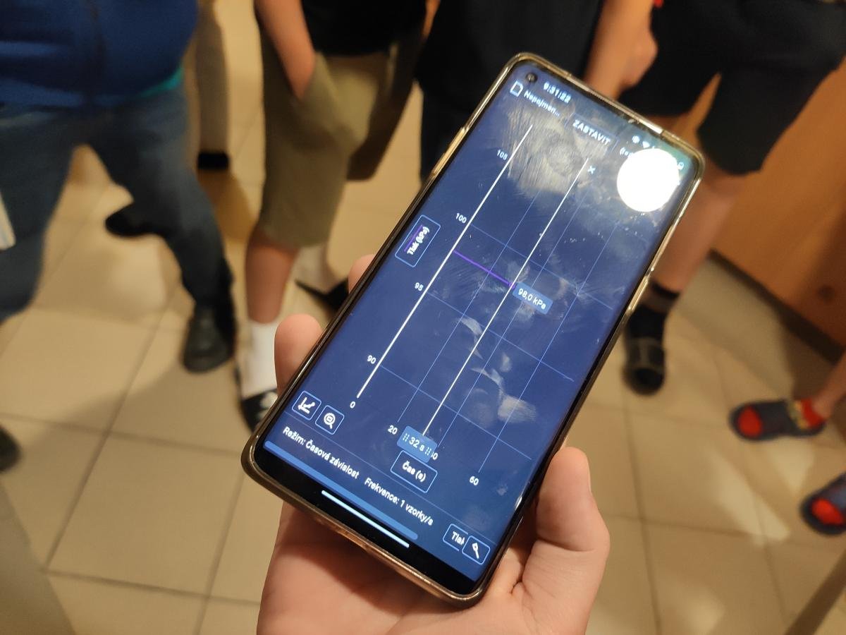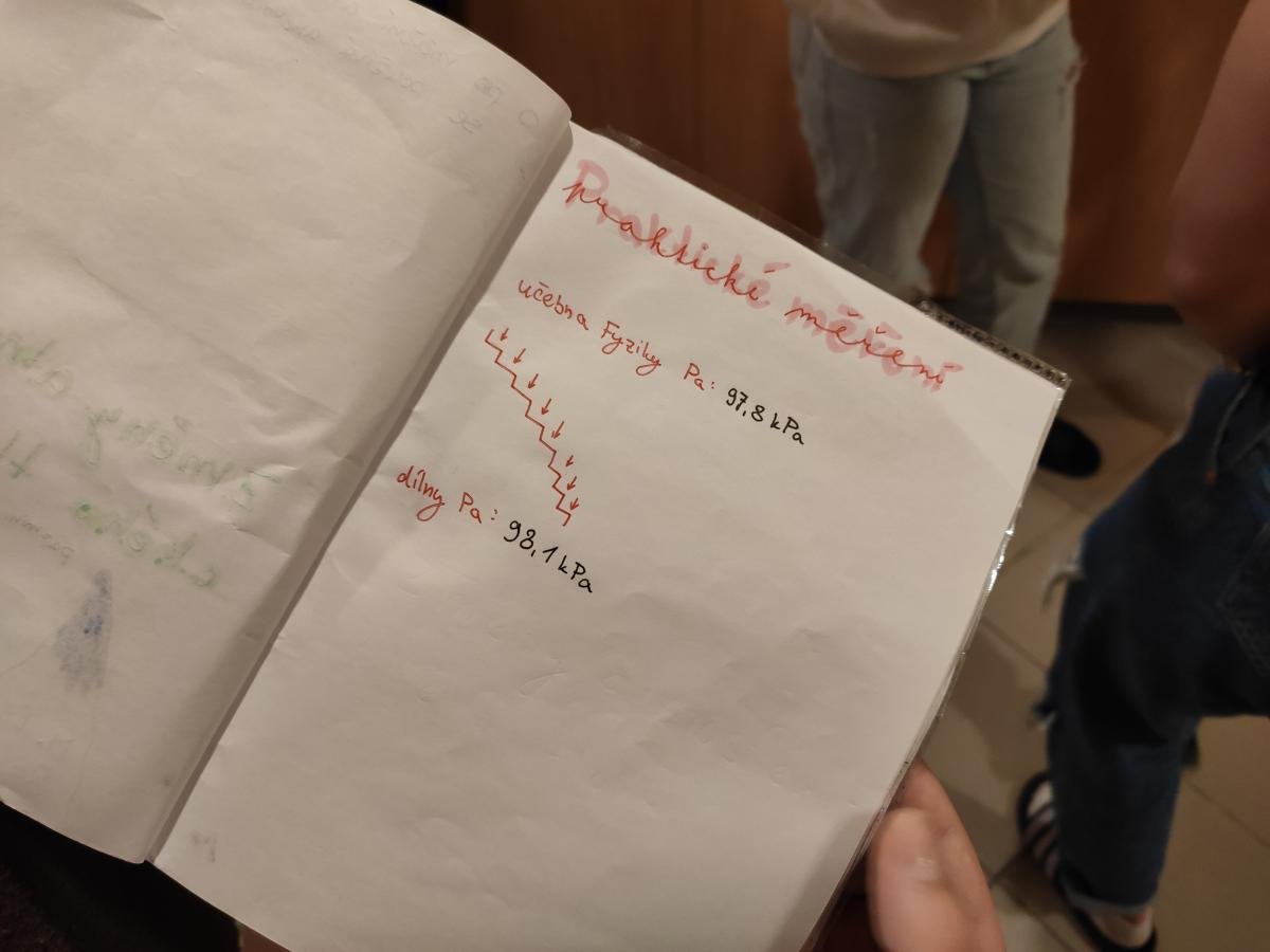 Žáci 7. ročníku v rámci fyziky zkoumali atmosféru naší Země. Využili k tomu digitální tlakoměry, mobilní telefony a své nohy. Tlakoměry bezdrátově připojili k telefonům a data vizualizovali pomocí aplikace Vernier Graphical Analysis, kterou si museli nejdříve sami nainstalovat. Rozvíjí se tím u žáků i digitální kompetenci. Experiment spočíval v měření tlaku v různých patrech školy od učebny fyziky až po suterén. Výsledkem bylo zjištění, že v závislosti na nadmořské výšce dochází také ke změnám tlaku.
